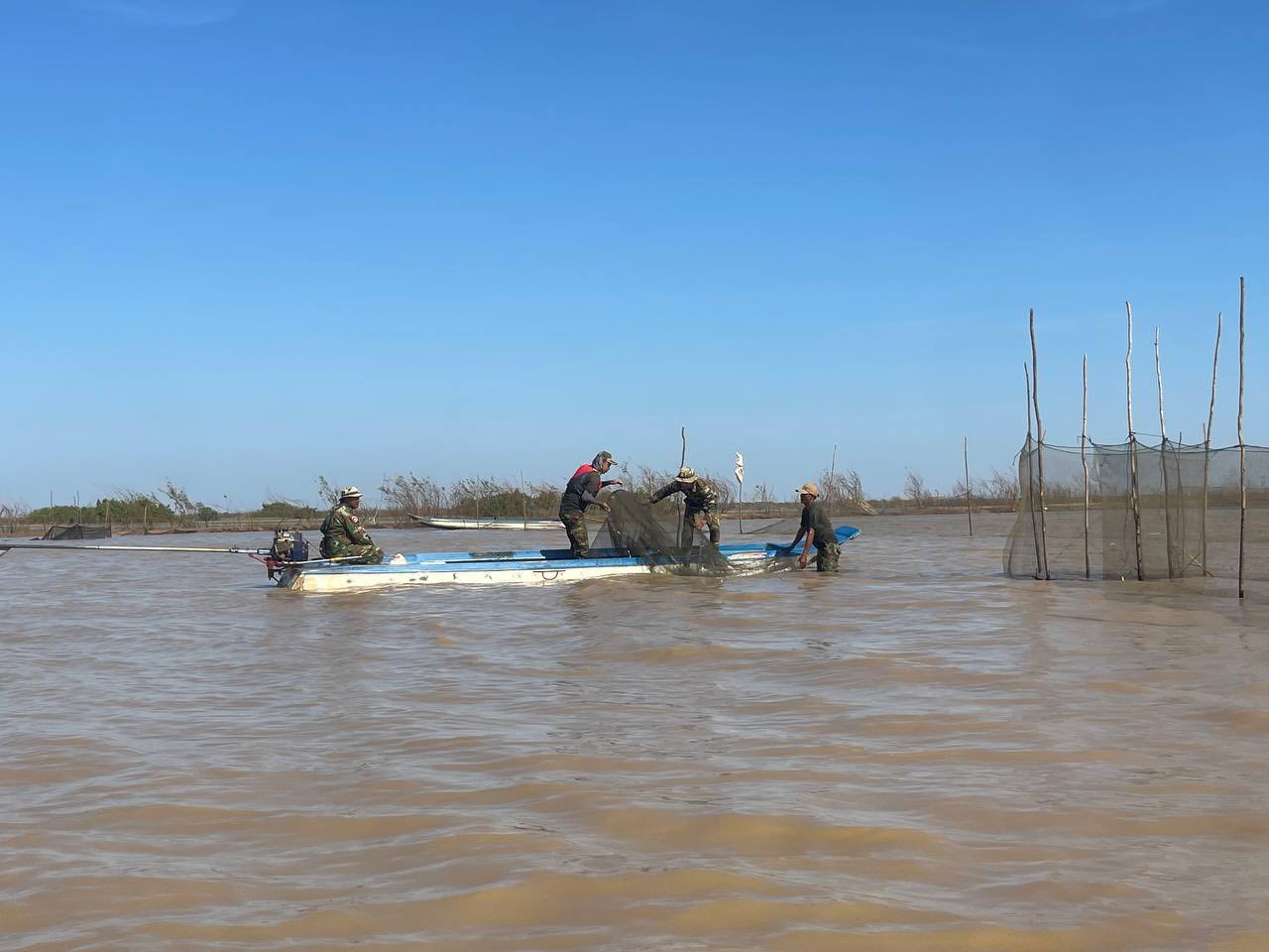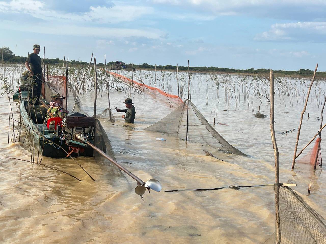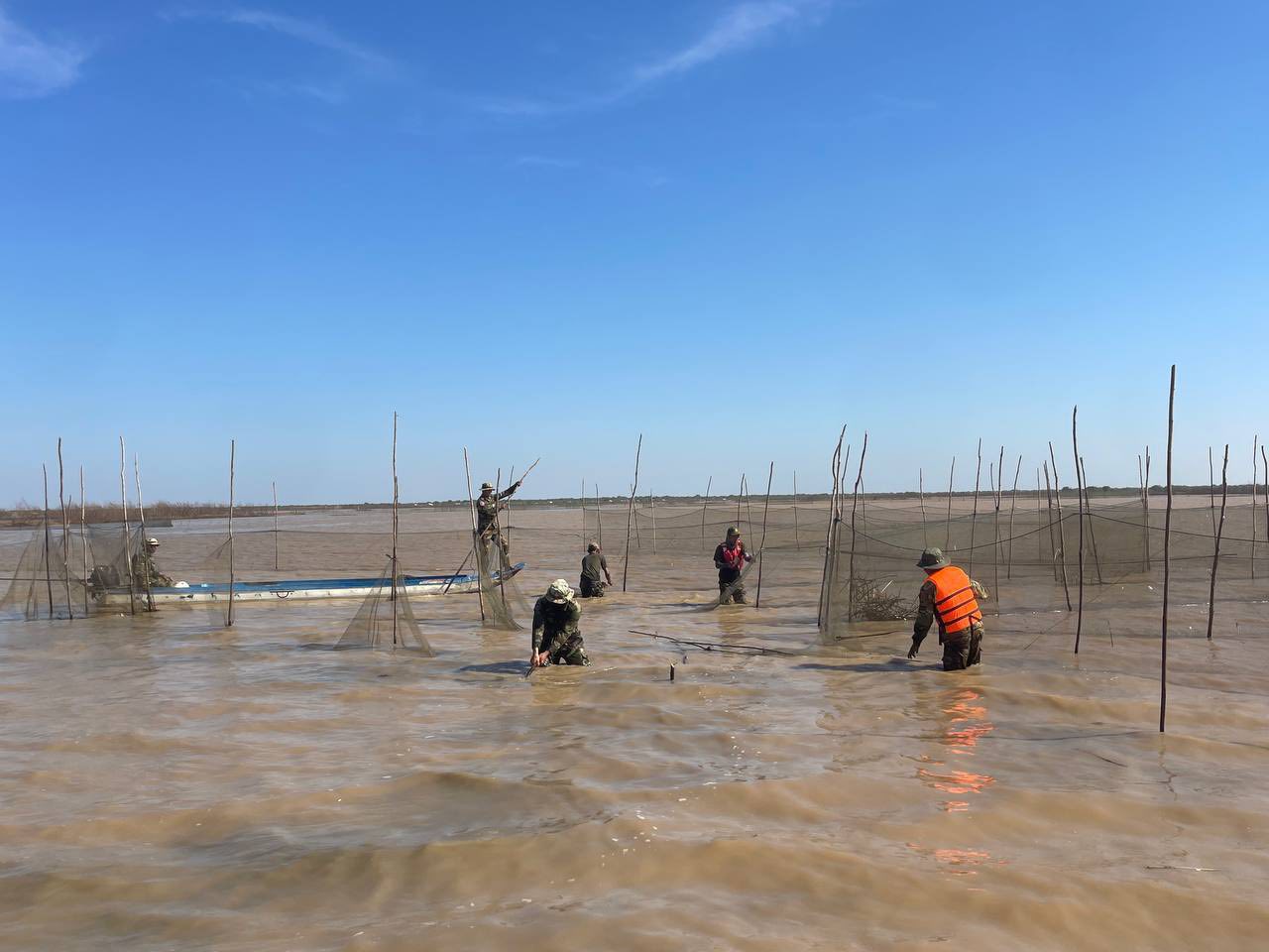 នៅព្រឹកថ្ងៃទី០៧ ខែមករា ឆ្នាំ២០២៦នេះ លោកវរសេនីយ៍ត្រី ភោគ ប៊ុនធឿន បានដឹកនាំកងកម្លាំង សហការជាមួយសមត្ថកិច្ចជំនាញសកម្មភាព បង្ក្រាបបទល្មើសនេសាទខុសច្បាប់ នៅតំបន់ក្អែកដេក និងតំបន់តាកន នៅក្នុងភូមិសាស្ត្រឃុំម្សារក្រង ស្រុកស្ទោង ជាលទ្ធផលបានរុះរើ និងកាប់បំផ្លាញចោលឧបករណ៍នេសាទខុសច្បាប់មានរបាំងសាច់អួនក្រឡាញឹក ចំនួន៦របាំង ប្រវែងជាង ១,៨០០ម៉ែត្រ និងបានបំផ្លាញចោលឡុកសាច់អួនចំនួន ៥គ្រឿង លបឬលូចំនួន ១២មាត់ និងចាក់ប្រលែងត្រីចម្រុះជាង ៣០គីឡូក្រាម ។