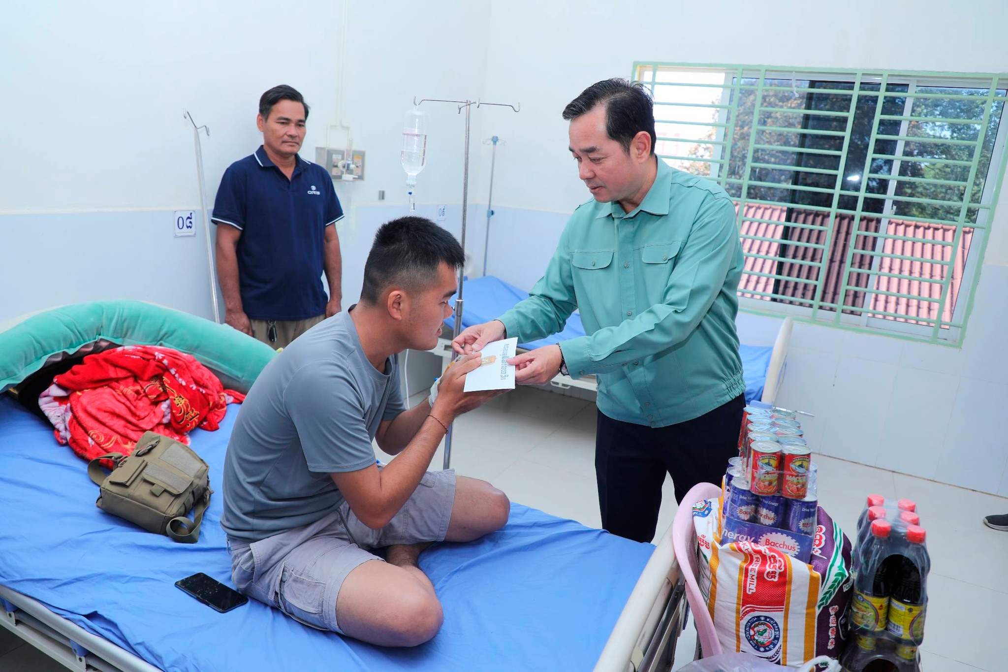 ខេត្តកំពង់ចាម ៖ នៅថ្ងៃទី០៨ ខែមករា ឆ្នាំ២០២៦ លោក អ៊ុន ចាន់ដា អភិបាល នៃគណៈអភិបាលខេត្តកំពង់ចាម និងលោក ខ្លូត ផន ប្រធានក្រុមប្រឹក្សាខេត្ត ដឹកនាំក្រុមការងារ ចុះសួរសុខទុក្ខ និងផ្ដល់អំណោយជូនវីរកងទ័ព ៣រូប និងនគរបាល ១រូប កំពុងសម្រាកព្យាបាលជំងឺ នៅមន្ទីរពេទ្យបង្អែកខេត្តកំពង់ចាម ។