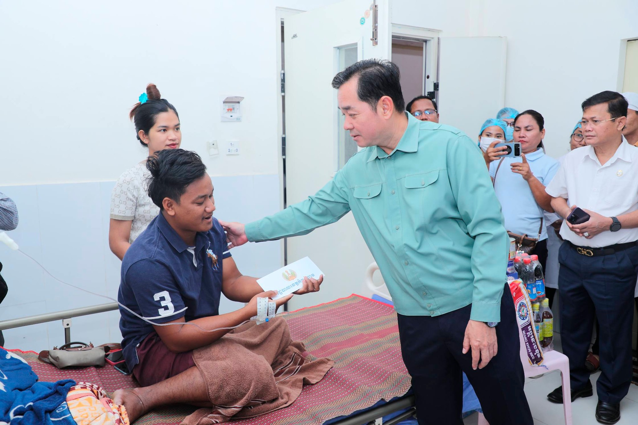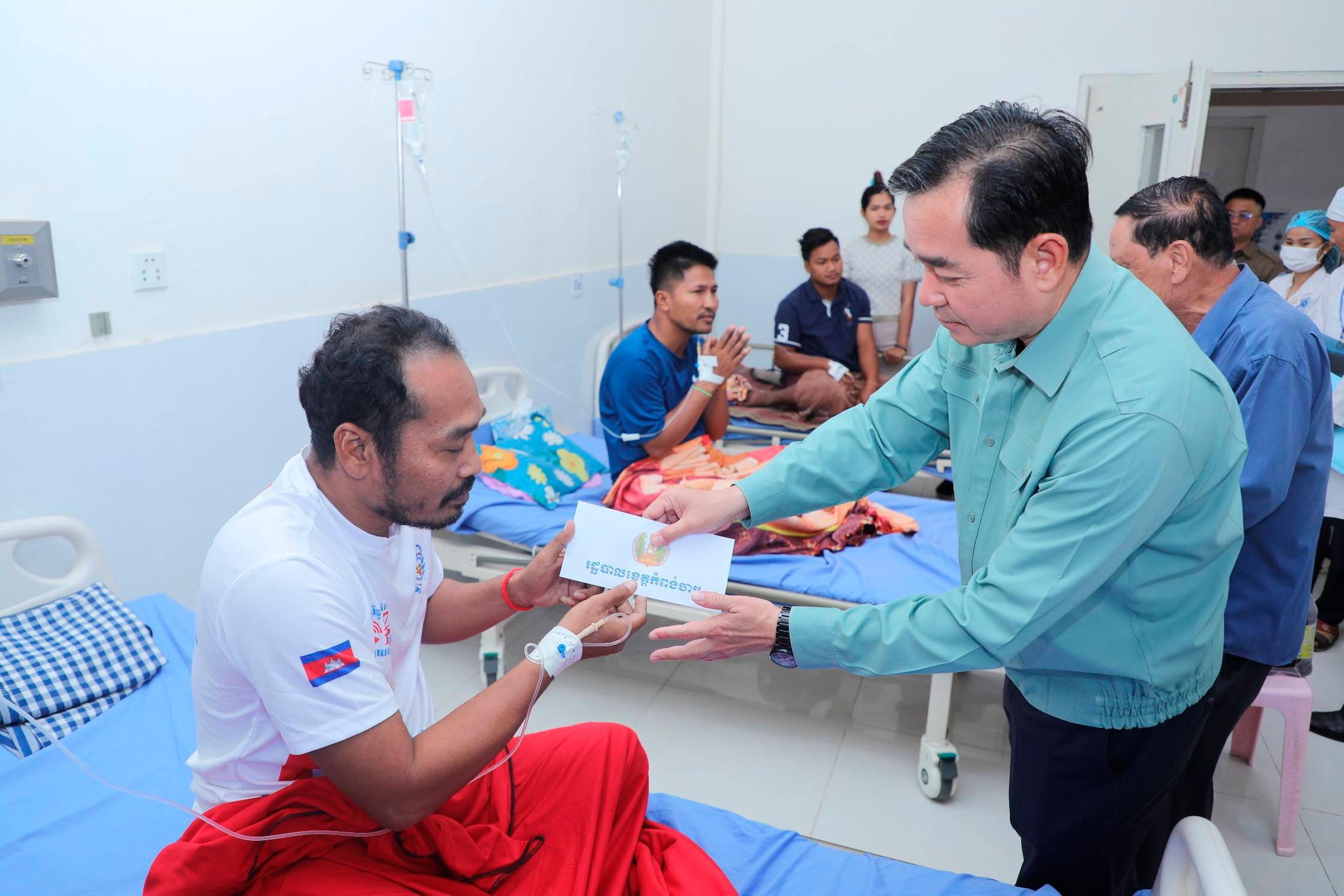 ថ្នាក់ដឹកនាំខេត្តកំពង់ចាម ចុះសួរសុខទុក្ខ ជូនអំណោយដល់វីរកងទ័ព៣រូប នគរបាល១រូប កំពុងសម្រាកព្យាបាលរបួសនៅមន្ទីរពេទ្យ