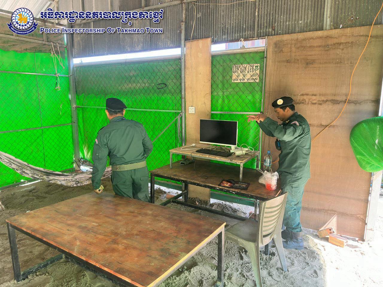ជាក់ស្តែង អធិការដ្ឋាននគរបាលក្រុងតាខ្មៅ បានប្រកាសនារសៀលថ្ងៃទី០៩ ខែមករានេះថា ៖ ក្រុមការងារព័ត៌មាន និងប្រតិកម្មរហ័សនៃអធិការដ្ឋាននគរបាលក្រុងតាខ្មៅ សូមជម្រាបជូនសាធារណៈជនអោយបានជ្រាបថា ៖ បន្ទាប់ពីទទួលបានសារពីប្រជាពលរដ្ឋស្នើសុំអាជ្ញាធរជួយពិនិត្យមើលល្បែងស៊ីសងអនឡាញខុសច្បាប់ ទីតាំងស្ថិតនៅសង្កាត់កំពង់សំណាញ់ ។ ក្រោយពីទទួលបានព័ត៌មានខាងលើនេះភ្លាម លោកអធិការនគរបាលក្រុងតាខ្មៅ បានបញ្ជាឲ្យលោកនាយប៉ុស្តិ៍នគរបាលរដ្ឋបាលកំពង់សំណាញ់ចុះទៅពិនិត្យ ស្រាវជ្រាវ និងបង្ក្រាបភ្លាម ។