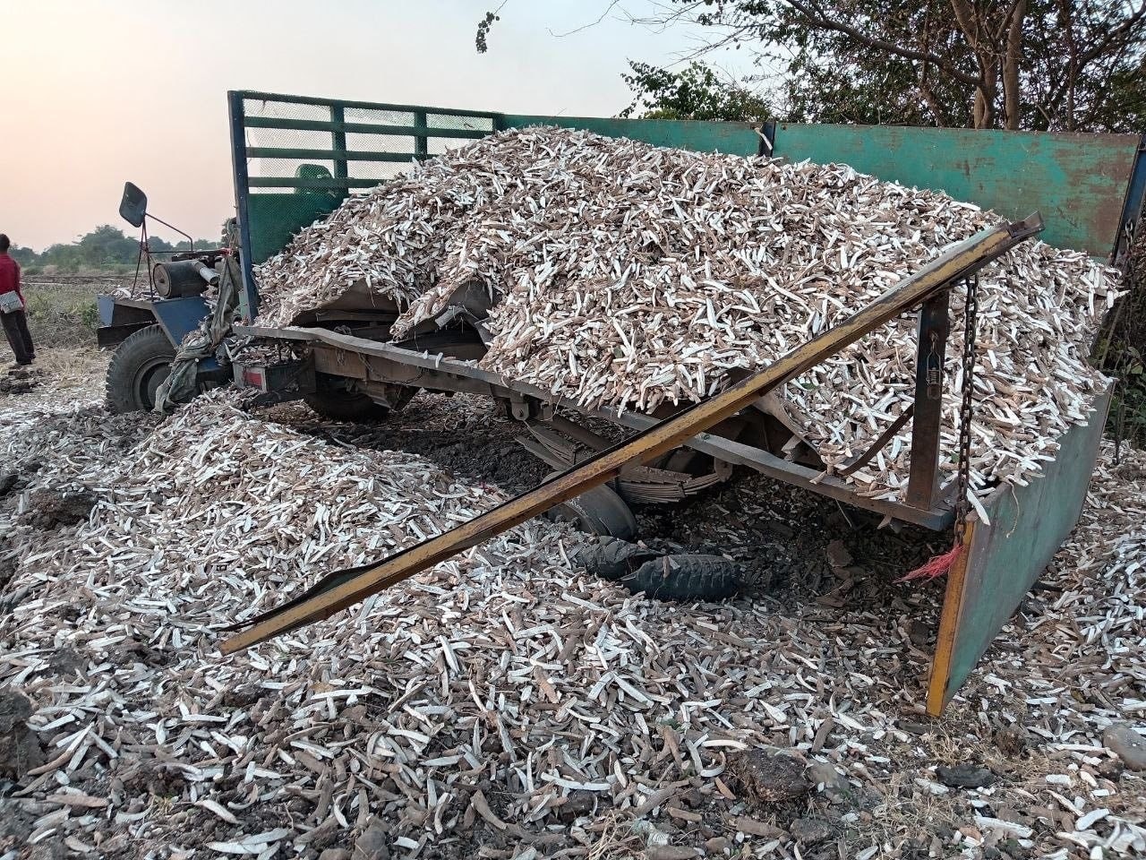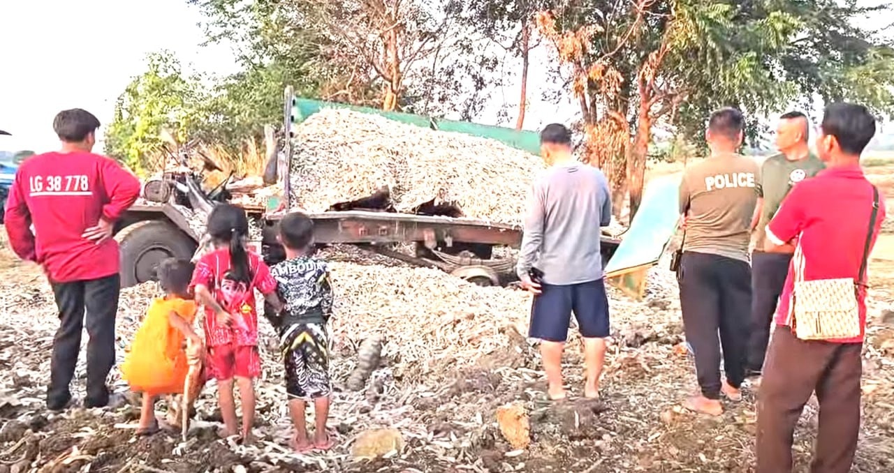 ឡានច្នៃដឹកដំឡូងមីកិនពេញទំហឹងលើមីនតោនផ្ទុះលាន់ដូចរន្ទះ សំណាងល្អម្ចាស់ចម្ការរួចជីវិត