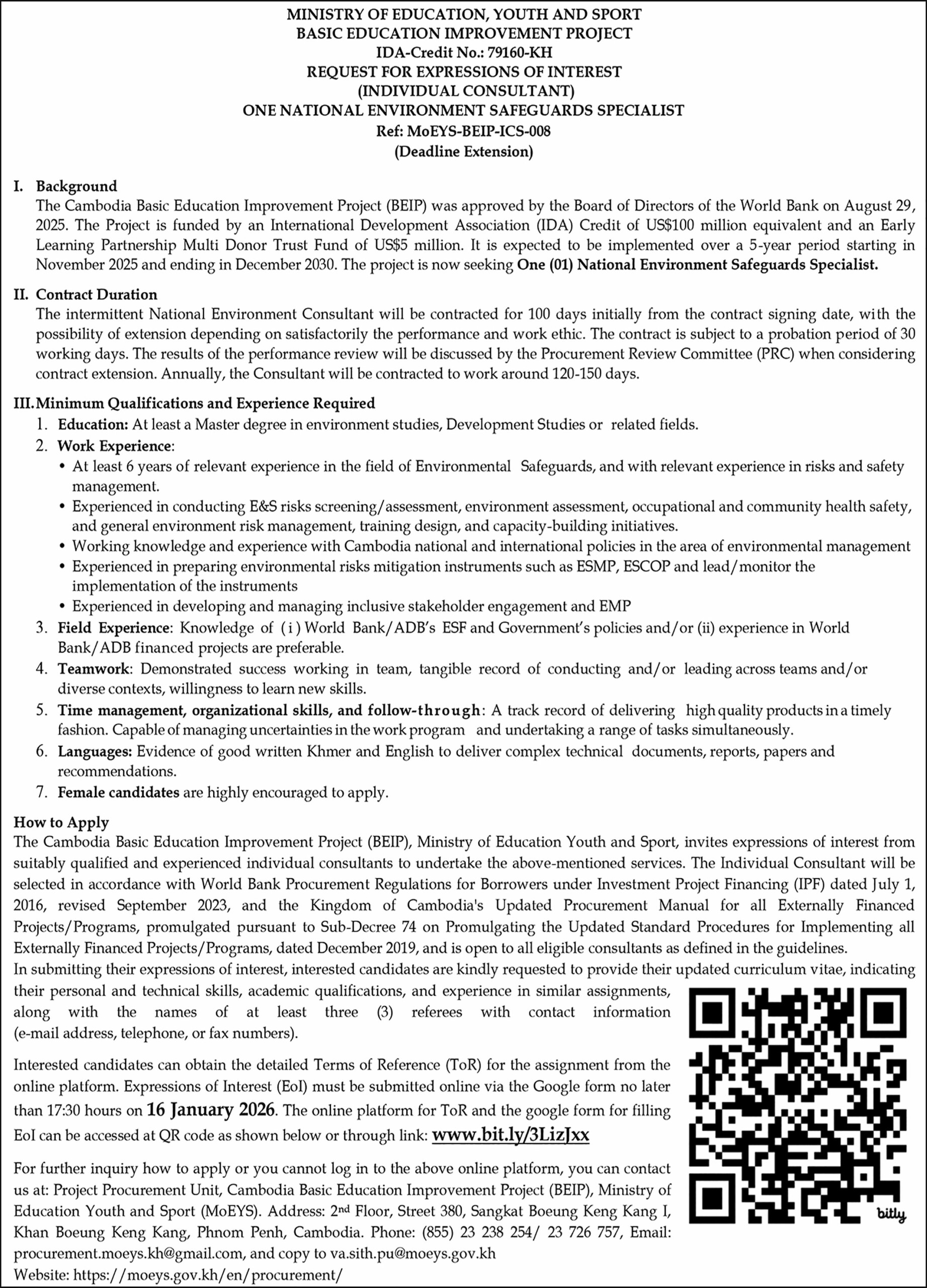 ក្រសួងការងារ ជូនដំណឹងពីចលនាប្រឡងប្រណាំង «សហគ្រាសមួយជាសហគមន៍សុខសាន្តមួយ» សម្រាប់ឆ្នាំ២០២៦ 1 ថ្ងៃ មុន