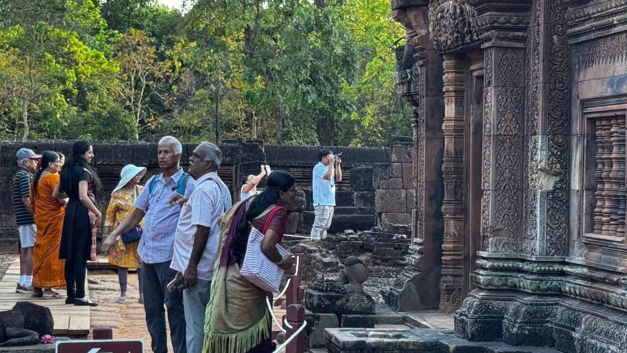 ខេត្តសៀមរាប ៖ តំបន់ប្រាសាទបុរាណក្នុងទឹកដីខេត្តសៀមរាប កំពុងបង្ហាញភាពទាក់ទាញយ៉ាងខ្លាំងចំពោះភ្ញៀវទេសចរមកពីប្រទេសឥណ្ឌា ដែលបានមកដល់ជាក្រុមតូចៗ និងប្រតិភូទេសចរណ៍ខ្នាតធំយ៉ាងច្រើនកុះករ ។ ជាក់ស្តែងបើយោងតាមទូរទស្សន៍ជាតិកម្ពុជាបានប្រកាសនារសៀលថ្ងៃទី១១ ខែមករា ឆ្នាំ២០២៦ថា…