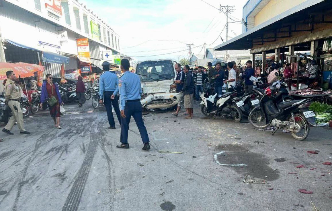 នគរបាលស្រុកបសេដ្ឋបាននិយាយឱ្យដឹងថា នៅមុនពេលកើតហេតុមានរថយន្ត០១គ្រឿងម៉ាកហ៊ីយ៉ាន់ដាយ (HYUNDAI PORTER) ពណ៌ស ពាក់ផ្លាកលេខភ្នំពេញ2BL-6856 ដែលមានម្ចាស់ឈ្មោះ ស ពិសិដ្ឋ ភេទប្រុស អាយុ៤៥ឆ្នាំ រស់នៅក្នុងភូមិព្រៃស្រូល ឃុំទួលអំពិល ស្រុកបសេដ្ឋ ខេត្តកំពង់ស្ពឺ បានឈប់រថយន្តរួចម្ចាស់រថយន្តដើរយកទឹកកកដាក់តាមតូបក្នុងផ្សារ ស្រាប់តែមានសន្តិសុខផ្សារម្នាក់ឈ្មោះ កែវ វាសនា ភេទប្រុស អាយុ៤៤ឆ្នាំ រស់នៅក្នុងភូមិស្រែព្រីង ឃុំស្វាយរំពារ ស្រុកបសេដ្ឋ ខេត្តកំពង់ស្ពឺ បានឡើងបើករថយន្តដឹកទឹកកកនោះ រួចក៏ជ្រុលទៅបុកជាមួយម៉ូតូមួយគ្រឿងម៉ាកហុងដាសេ១២៥ ស៊េរីឆ្នាំ២០១៨ ពណ៌ខ្មៅ ពាក់ផ្លាកលេខកំពង់ស្ពឺ1K-1084 បើកបរដោយឈ្មោះ ឡាយ ស៊ុន ភេទប្រុស អាយុ៦៧ឆ្នាំ(ស្លាប់ភ្លាមៗនៅកន្លែងកើតហេតុ) ឌុបប្រពន្ធពីក្រោយឈ្មោះ ទូច ស្រីអ៊ិត ភេទស្រី អាយុ៥២ឆ្នាំ អ្នកទាំងពីររស់នៅក្នុងភូមិព្រៃពាយ ឃុំទួលអំពិល ស្រុកបសេដ្ឋ ខេត្កកំពង់ស្ពឺ ដែលកំពុងបើកបរមកពីមុខបញ្ច្រាសទិសគ្នាពេញទំហឹង រួចក៏បន្តជ្រុលទៅបុកជាមួយរថយន្ត០១គ្រឿងទៀតម៉ាកហ៊ីយ៉ាន់ដាយ(HYUNDAI PORTER) ពណ៌ស ស៊េរីឆ្នាំ១៩៩៩ ពាក់ផ្លាកលេខតាកែវ2C-7759 ដែលមានម្ចាស់ឈ្មោះ សាន រាជ្រ ភេទប្រុស អាយុ៣១ឆ្នាំ រស់នៅក្នុងភូមិត្រពាំងរំដួល ឃុំជំរៈពេន ស្រុកសំរោង ខេត្តតាកែវ ដែលកំពុងឈប់យកសាច់ជ្រូកដាក់តាមតូបក្នុងផ្សារទៀត បង្កឱ្យមានការភ្ញាក់ផ្អើលដល់អ្នកលក់ដូរនិងសមត្ថកិច្ចជំនាញ។