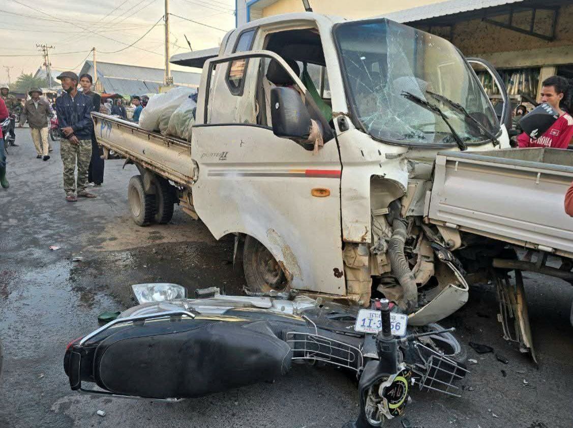 ខេត្តកំពង់ស្ពឺ ៖ បុរសវ័យចំណាស់ជាប្តីបានស្លាប់ភ្លាមៗនៅកន្លែងកើតហេតុ ស្ត្រីជាប្រពន្ធទៀតបានរងរបួសស្រាល ខណៈដែលបុរសជាសន្តិសុខផ្សារបានឡើងបើករថយន្តដឹកទឹកកក ដែលម្ចាស់កំពុងឈប់យកទឹកកកដាក់ឱ្យម៉ូយ ហើយក៏បានជ្រុលចង្កូតទៅបុករះម៉ូតូមួយគ្រឿងនិងរថយន្តមួយគ្រឿងទៀតចំពីមុខយ៉ាងពេញទំហឹង បង្កឱ្យមានការភ្ញាក់ផ្អើលទាំងព្រឹក។