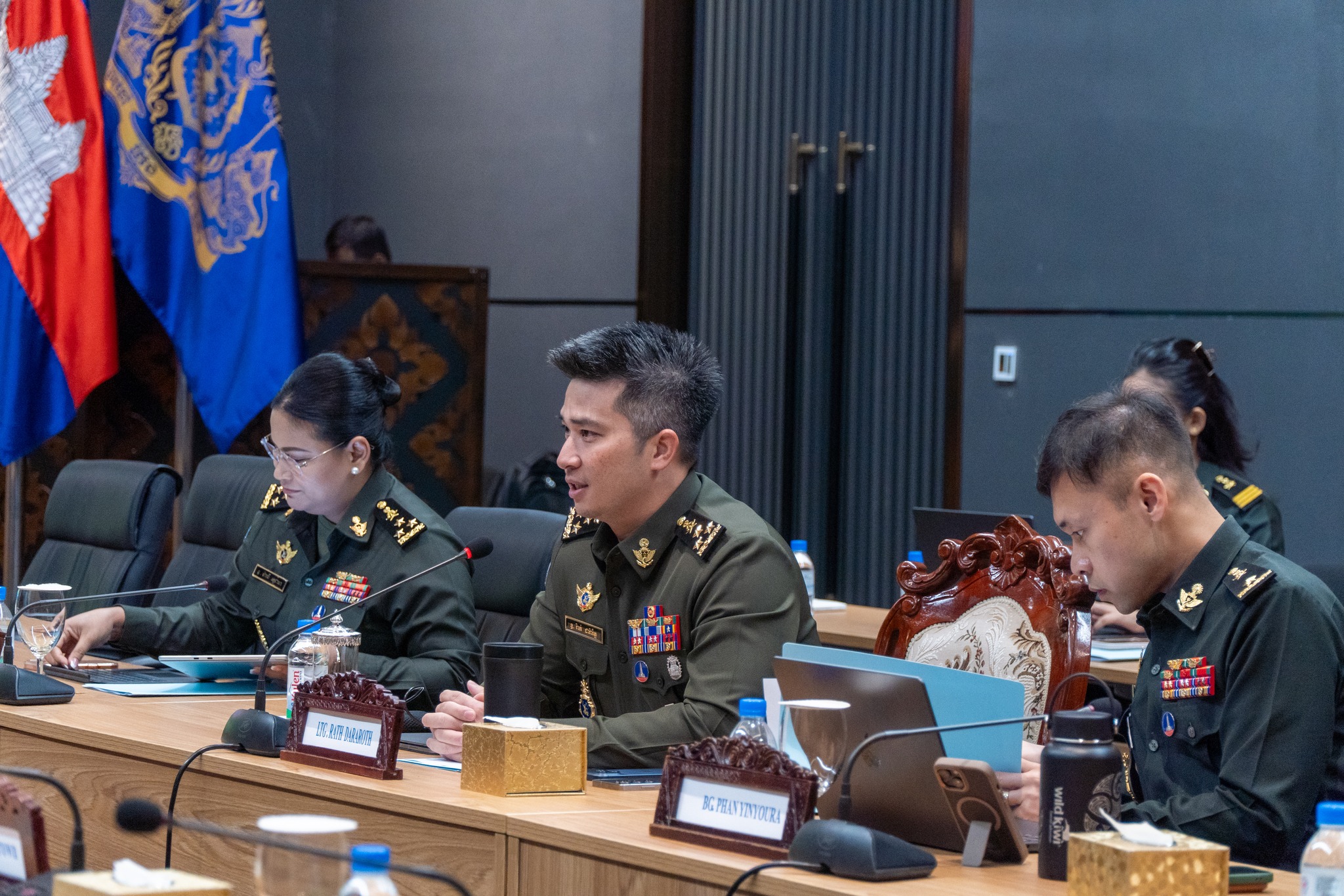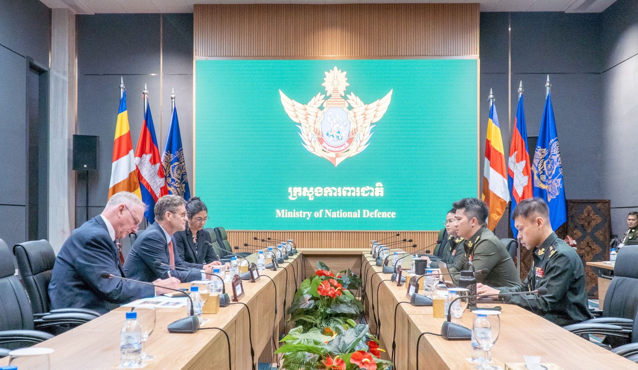 រាជធានីភ្នំពេញ ៖ លោកជំទាវ ឧត្តមសេនីយ៍ឯក ម៉ាលី សុជាតា អ្នកនាំពាក្យក្រសួងការពារជាតិ នៃព្រះរាជាណាចក្រកម្ពុជា បានឲ្យដឹងថា នៅព្រឹកថ្ងៃទី១២ ខែមករា ឆ្នាំ២០២៦ នៅទីស្តីការក្រសួងការពារជាតិ លោកឧត្តមសេនីយ៍ឯក រ៉ាត់ ដារ៉ារ័ត្ន រដ្ឋលេខាធិការក្រសួងការពារជាតិ បានទទួលជួបសម្តែងការគួរសម និងពិភាក្សាការងារ ជាមួយគណៈប្រតិភូ នៃគណៈកម្មាធិការអន្តរជាតិនៃកាកបាទក្រហម (ICRC) ដឹកនាំដោយលោក Stéphane Bonamy ប្រធានបេសកកម្ម ICRC ប្រចាំរាជធានីភ្នំពេញ ។