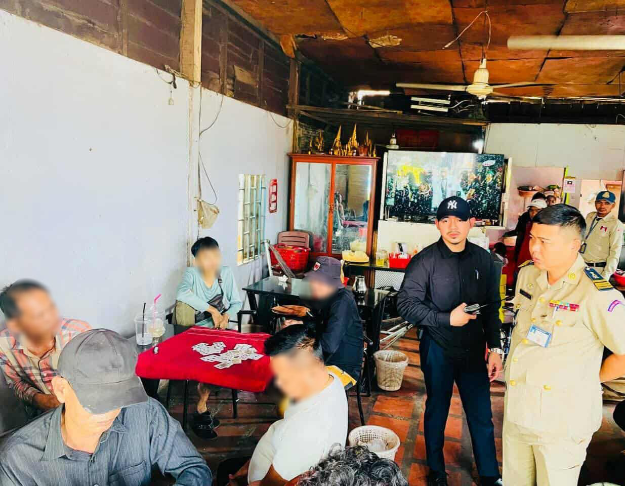 លោក ជិន ប៊ុនធឿន អភិបាលខណ្ឌឫស្សីកែវ បានអោយដឹងថា លោកបានចាត់ឲ្យលោក ឌន ដាវុឌ នាយករងរដ្ឋបាលខណ្ឌ ដឹកនាំកម្លាំងចម្រុះ ចុះបង្ក្រាបទីតាំងហាងកាហ្វេ បង្កប់ល្បែងស៊ីសងមួយកន្លែង ស្ថិតក្នុងភូមិក្រោលគោ សង្កាត់គីឡូម៉ែត្រលេខ៦ ដោយបានដកហូតបានកុំព្យូទ័រមួយគ្រឿង បៀមួយហ៊ូ ឃាត់ខ្លួនមនុស្សបាន៦នាក់ កំពុងប្រព្រឹត្តល្បែងស៊ីសង និងម្ចាស់ទីតាំង១នាក់ សរុប៧នាក់ ។