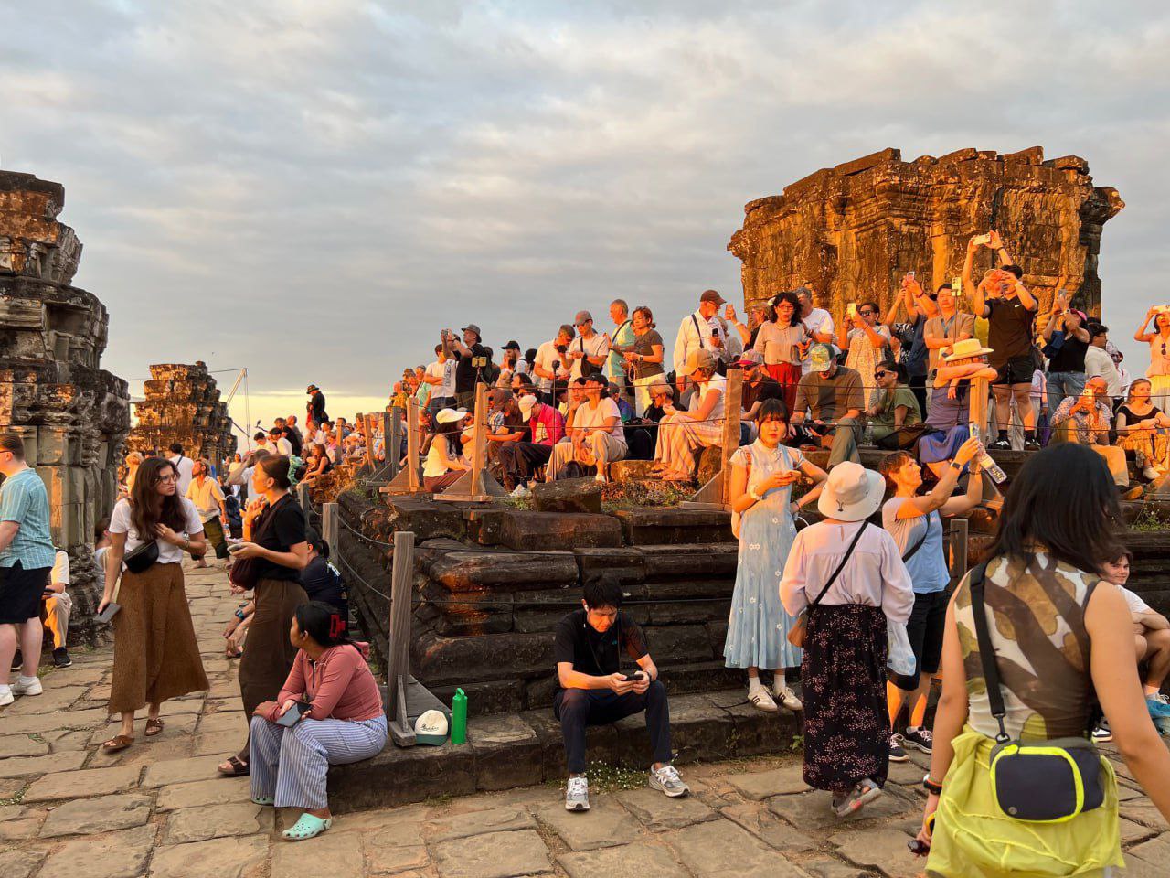សម្រាប់ថ្ងៃនេះ សង្កេតឃើញថា មានភ្ញៀវជាតិ និងអន្តរជាតិមកច្រើន និយាយរួមគឺច្រើនមែនទែន ដើម ខែមុននេះ កន្លែងខ្លះស្ទើរតែយើងពិបាកនឹងថតទៀត អីចឹងជារឿងមួយដែលយើងសប្បាយរីករាយទាំងអស់គ្នា ដែលសប្បាយរមណីយដ្ឋានអង្គរយើងសម្បូរភ្ញៀវទេសចរជាតិ និងអន្តរជាតិមកទស្សនា។