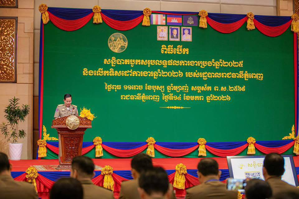 រាជធានីភ្នំពេញ ៖ ក្នុងពិធីបើកសន្និបាតបូកសរុបលទ្ធផលការងារប្រចាំឆ្នាំ២០២៥ និងលើកទិសដៅការងារឆ្នាំ២០២៦ របស់រដ្ឋបាលរាជធានីភ្នំពេញ នៅសណ្ឋាគាររ៉េស៊ីដង់សុខាភ្នំពេញកាលពីថ្ងៃទី១៤ ខែមករា ឆ្នាំ២០២៦ ឯកឧត្តម ឃួង ស្រេង អភិបាលរាជធានីភ្នំពេញ បានមានប្រសាសន៍ថា នៅក្នុងឆ្នាំ២០២៥ រដ្ឋបាលរាជធានីភ្នំពេញ អនុវត្តការងារបានយ៉ាងល្អ ទាំងការរក្សាសន្តិសុខ សណ្តាប់ធ្នាប់ ពាណិជ្ជកម្ម ទេសចរណ៍ ការផ្តល់សេវាជូនជូនប្រជាពលរដ្ឋ និងអភិវឌ្ឍន៍ធនធានមនុស្ស ស្របទៅតាមតម្រូវការចាំបាច់របស់ប្រជាពលរដ្ឋ ។