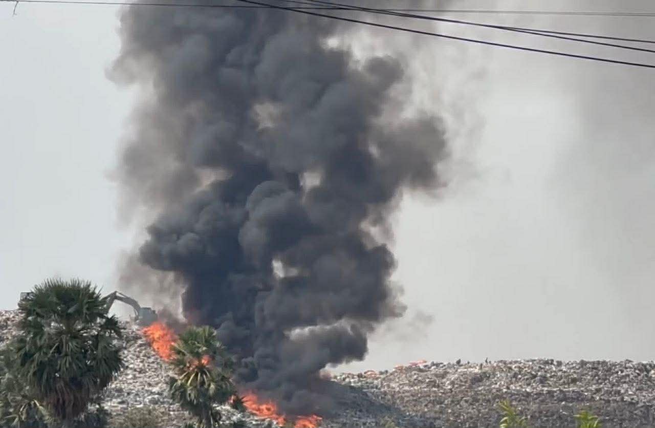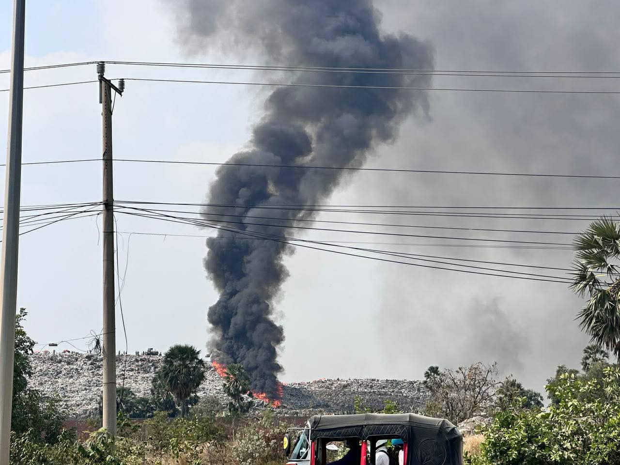 រាជធានីភ្នំពេញ៖ ភ្លើងបានឆេះភ្នំសំរាមនៅទីលានចាក់សំរាមជើងឯកសន្ធោសន្ធៅ និងមានផ្សែងខ្មៅឃ្មួលខ្មាញ់កប់អាកាសវេហាស៍ដោយពុំដឹងមូលហេតុ ប៉ុន្តែសមត្ថកិច្ចសង្ស័យថា បណ្ដាលមកពីអ្នករើសអេតចាយដុតសម្ភារៈផ្សេងយកដែក ឬស្ពាន់លក់អេតចាយ ឬក៏អាចមកពីការបោះចោលកន្ទុយបារីផ្ដេសផ្ដាសជាដើម ។ ពេលភ្លាមៗនោះអាជ្ញាធរនិងសមត្ថកិច្ច ព្រមទាំងរថយន្តពន្លត់អគ្គិភ័យបានចេញទៅបាញ់ទឹកពន្លត់រួមជាមួយក្រុមការងារនៅទីលានចាក់សំរាមនោះយកគ្រឿងចក្រឈូសឆាយកាយត្រឡប់ចុះឡើងៗលុបផងបានរលត់ទៅវិញទាំងស្រុង ។