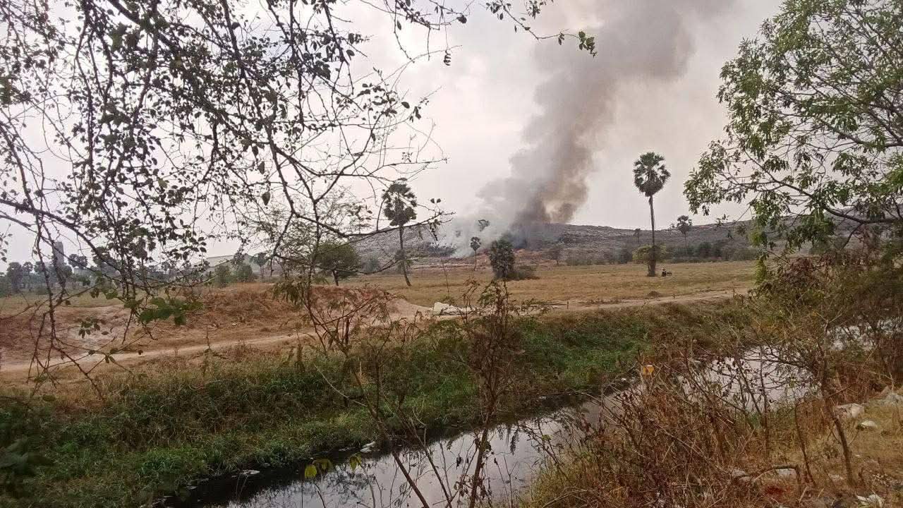 សមត្ថកិច្ចបានប្រាប់ថា កន្លងមកនៅទីលានចាក់សំរាមខាងលើធ្លាប់ត្រូវបានភ្លើងឆាបឆេះជាបន្តបន្ទាប់មកហើយដែរ ដែលសង្ស័យថា បណ្ដាលមកពីក្រុមអ្នករើសអេតចាយដុតសម្ភារះផ្សេងយកដែក ឬស្ពាន់លក់អេតចាយ ឬក៏អាចមកពីការបោះចោលកន្ទុយបារីផ្ដេសផ្ដាសលើសំរាមស្ងួតងាយនិងមានការឆេះ ។ ទើបបណ្ដាយឲ្យភ្លើងឆេះឡើង ប៉ុន្តែពុំដែលបង្កឲ្យមានគ្រោះថ្នាក់ដល់មនុស្សណាម្នាក់នោះទេ ហើយក៏មិនដែលបានឆេះដល់ផ្ទះសម្បែងអ្នកស្រុកនោះដែរ ព្រោះនៅពេលឆេះម្ដង ត្រូវបានពន្លត់រលត់ទៅវិញ និងមិនបានឆេះរាលពេញភ្នំសំរាមដ៏ធំទាំងមូលនោះឡើយ ។