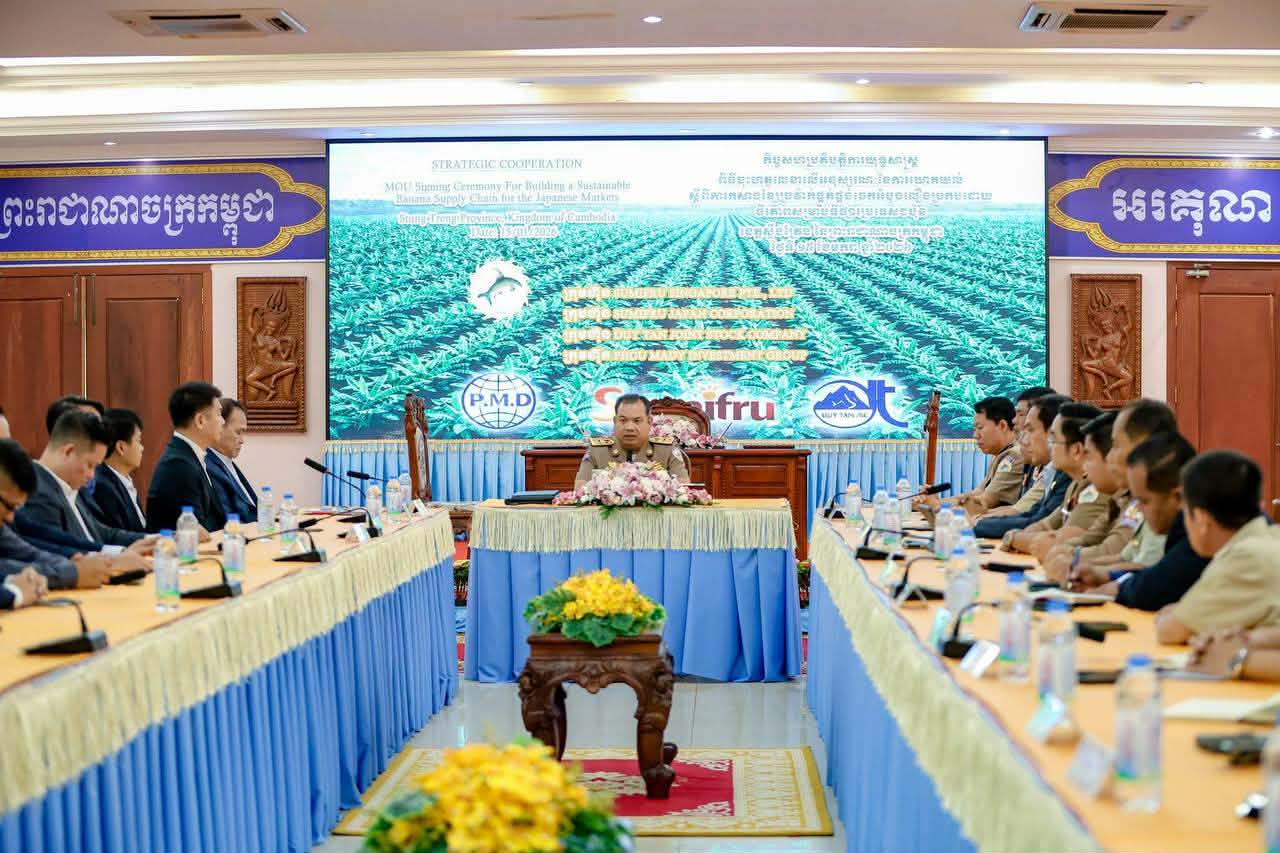 នាព្រឹកថ្ងៃទី១៥ ខែមករា ឆ្នាំ២០២៦ នៅសាលាខេត្តស្ទឹងត្រែង បានរៀបចំពិធីចុះហត្ថលេខាលើអនុស្សរណៈ នៃការយោគយល់ (MOU) ស្តីពី «ការកសាងខ្សែច្រវ៉ាក់ផ្គត់ផ្គង់ចេកអំបូងលឿង ទៅកាន់ទីផ្សារប្រទេសជប៉ុន» រវាងក្រុមហ៊ុន ភូម៉ាឌី (Phumady Investment Group) និងក្រុមហ៊ុន SUMIFRU JAPANCORAPORTION ក្រោមអធិបតីភាពលោក សរ សុពុត្រា អភិបាលនៃគណៈអភិបាលខេត្តស្ទឹងត្រែង ។