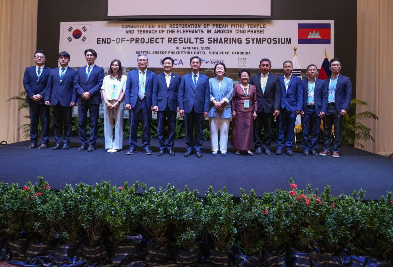 រាជធានីភ្នំពេញ ៖ យោងតាមក្រសួងវប្បធម៌ និងវិចិត្រសិល្បៈបានឱ្យដឹងថា នៅព្រឹកថ្ងៃទី១៦ ខែ មករា ឆ្នាំ២០២៦ ឯកឧត្តមបណ្ឌិត ហង់ ពៅ អគ្គនាយកនៃអាជ្ញាធរជាតិអប្សរា និងឯកឧត្តម Kim Chang Yong ឯកអគ្គរដ្ឋទូតនៃសាធារណរដ្ឋកូរ៉េប្រចាំកម្ពុជា បានអញ្ជើញជាអធិបតីក្នុងសន្និសីទស្ដីពីការចែករំលែកលទ្ធផលបញ្ចប់គម្រោងអភិរក្ស និងជួសជុលក្រុមប្រាសាទព្រះពិធុរ និងព្រះលានជល់ដំរី ដំណាក់កាលទី២ ដោយមានការចូលរួមពីតំណាងជាន់ខ្ពស់នៃទីភ្នាក់ងារបេតិកភណ្ឌកូរ៉េ (KHA) និងទីភ្នាក់ងារកិច្ចសហប្រតិបត្តិការអន្តរជាតិកូរ៉េ(KOICA) ព្រមទាំងថ្នាក់ដឹកនាំ និងអ្នកជំនាញជាតិ-អន្តរជាតិ ដែលមកពីស្ថាប័នដៃគូលើការងារអភិរក្ស និងជួសជុលប្រាសាទបុរាណជាច្រើនផងដែរ។