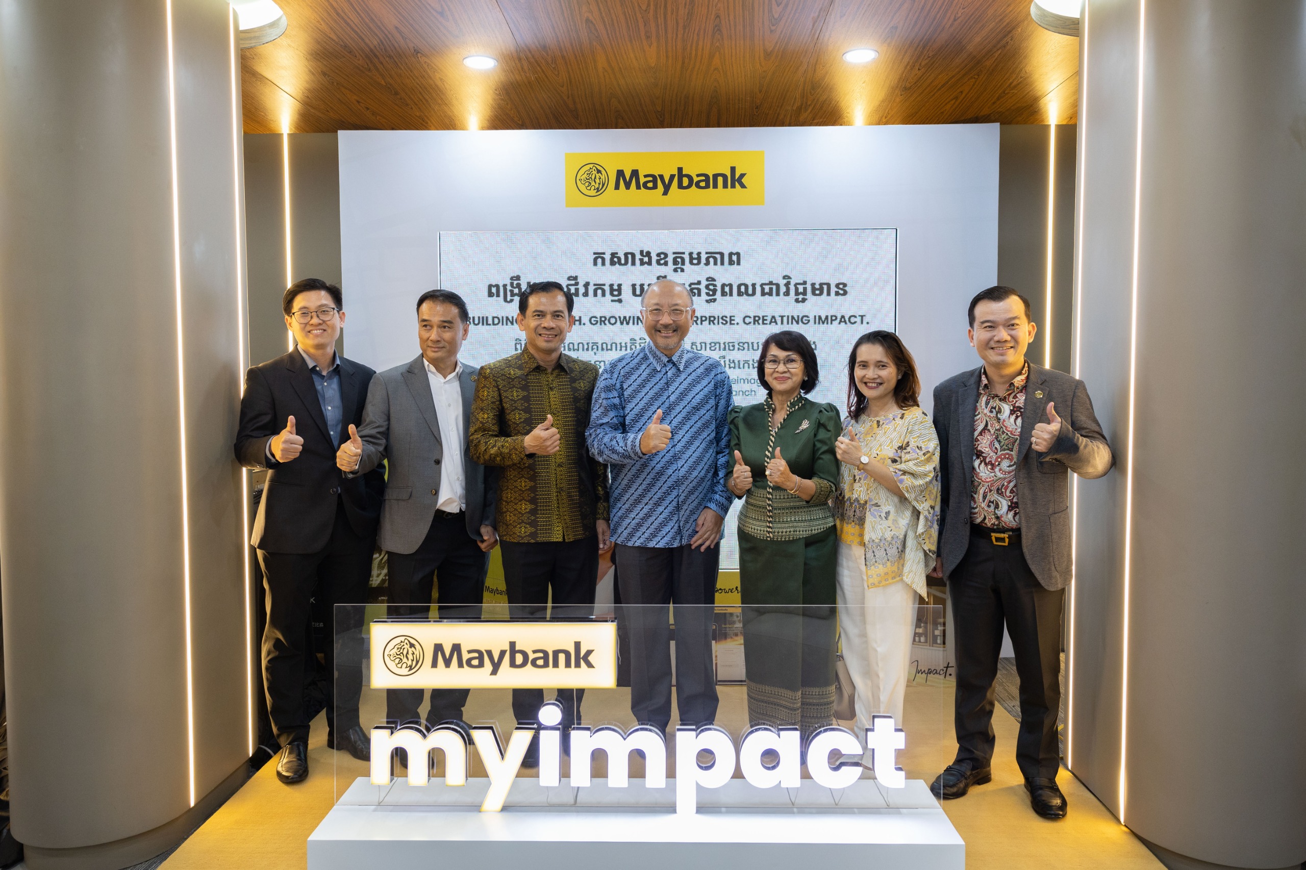 លោកស្រី ហ្គាសរីន ចាន់ នាយិកា នាយកដ្ឋានគ្រប់គ្រងប្រតិបត្តិការ នៃធនាគារ មេយប៊ែង (ខេមបូឌា) ភីអិលស៊ី បានបន្ថែមថា ៖ «ការផ្តួចផ្តើម Maybank myimpact ឆ្លុះបញ្ចាំងពីរបៀបដែលយើងបញ្ចូលនូវគំនិតផ្តួចផ្តើមប្រកបដោយចីរភាព និងបរិយាបន្នហិរញ្ញវត្ថុយ៉ាងយកចិត្តទុកដាក់ ទៅក្នុងការផ្តល់សេវាហិរញ្ញវត្ថុរបស់យើង។ តាមរយៈការធ្វើប្រតិបត្តិការហិរញ្ញវត្ថុឲ្យស្របទៅតាមគោលដៅលទ្ធផលជាវិជ្ជមានសម្រាប់សង្គម និងបរិស្ថាននេះ យើងនឹងផ្សារភ្ជាប់អតិថិជន និងម្ចាស់អាជីវកម្ម ឲ្យក្លាយទៅជាផ្នែកមួយ នៃដំណើរ នៃការគាំទ្រដល់ការរីកចម្រើនដែលមានការទទួលខុសត្រូវ ក៏ដូចជាការគាំទ្រដល់សហគមន៍ឲ្យមានភាពរឹងមាន នៅក្នុងមជ្ឈដ្ឋានមួយដែលល្អប្រសើរ» ។