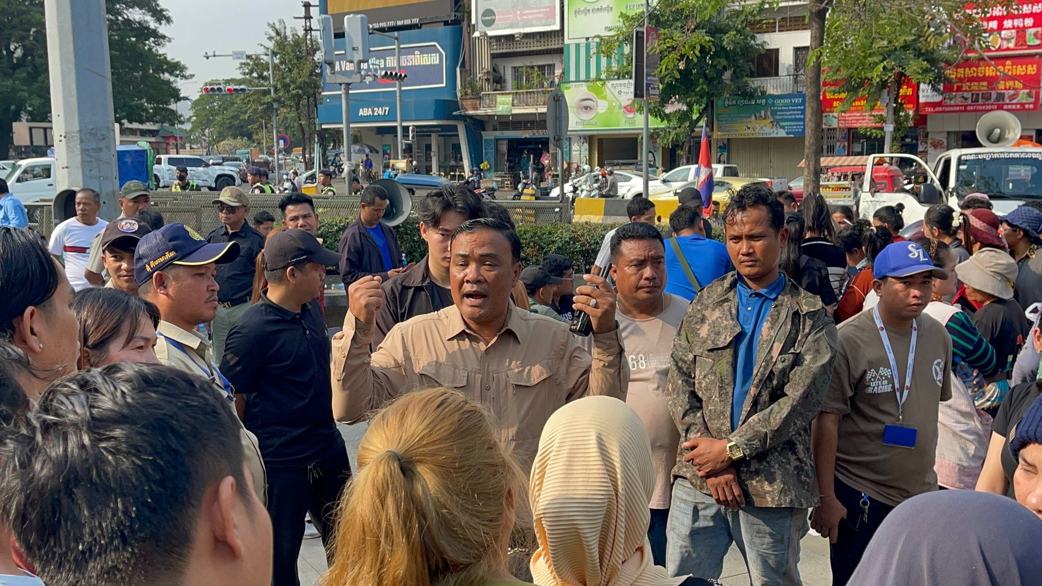 លោក សុខ ពេញវុធ អភិបាលរង នៃគណៈអភិបាលរាជធានីភ្នំពេញ ដឹកនាំក្រុមការងារអាជ្ញាធរដែនដី ចុះធ្វើការសម្របសម្រួល និងពន្យល់ណែនាំដល់បងប្អូនអាជីវករ ក្នុងគោលបំណងបើកផ្លូវឱ្យប្រជាពលរដ្ឋអាចធ្វើដំណើរឡើងវិញ នាព្រឹកថ្ងៃទី១៨ ខែមករា ឆ្នាំ២០២៦នេះ ដោយស្ថានភាពនៅតាមបណ្ដោយផ្លូវមុន្នីរ៉េត ត្រង់ចំណុចសង្កាត់ផ្សារដើមគរ ក្នុងខណ្ឌទួលគោក ត្រូវបានក្រុមអាជីវករបានបន្តការតវ៉ាបិទផ្លូវ ដើម្បីទាមទារសិទ្ធិលក់ដូរនៅទីតាំងដដែល។