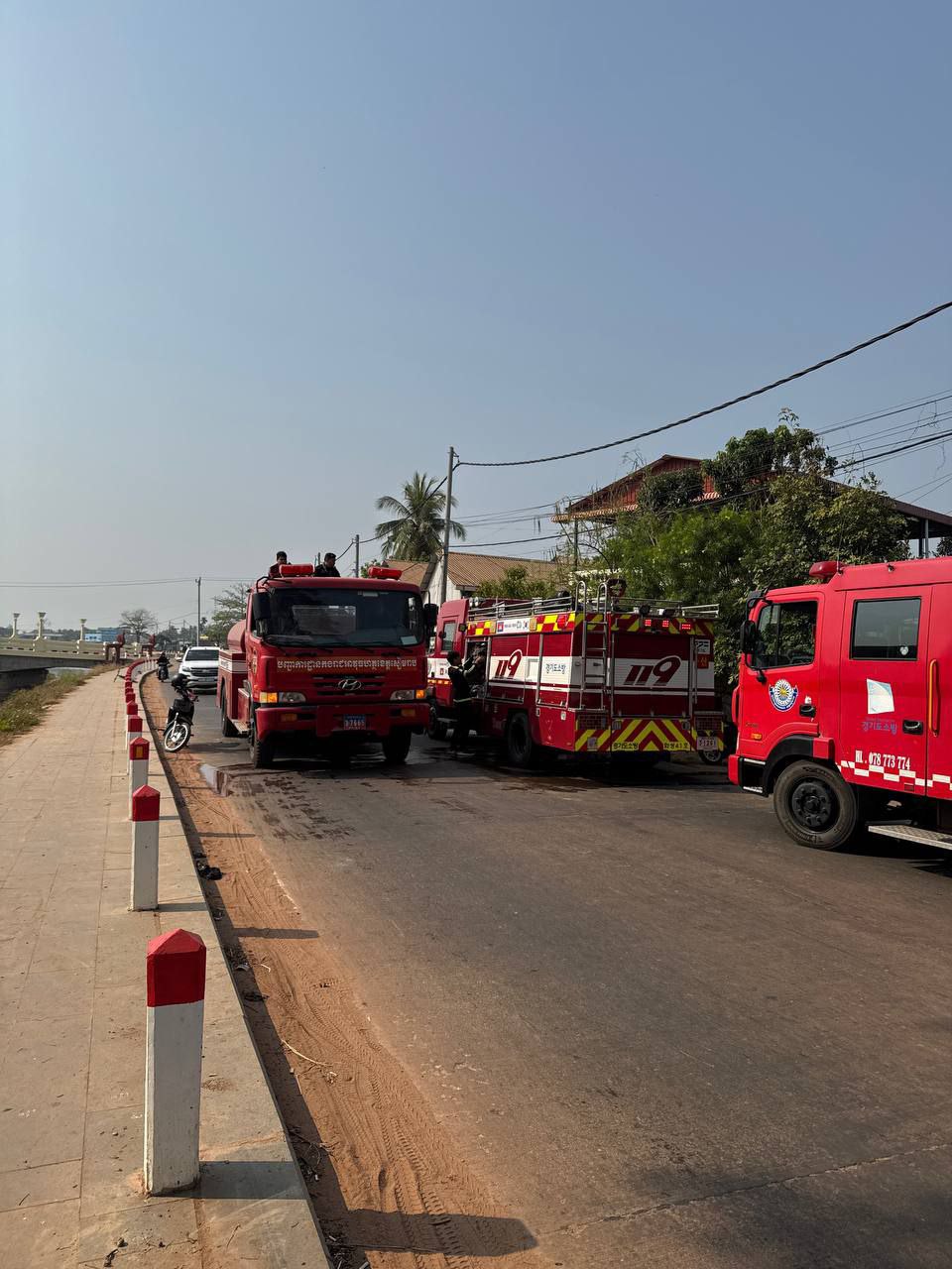 រថយន្តពន្លត់អគ្គីភ័យរបស់កងរាជអាវុធហត្ថខេត្ត១គ្រឿង នឹងរថយន្តរបស់ស្នងការដ្ឋាននគរបាលខេត្តសៀមរាប ១ គ្រឿងហើយបានប្រើប្រាស់ទឹកអស់ចំនួន២ឡាន ។