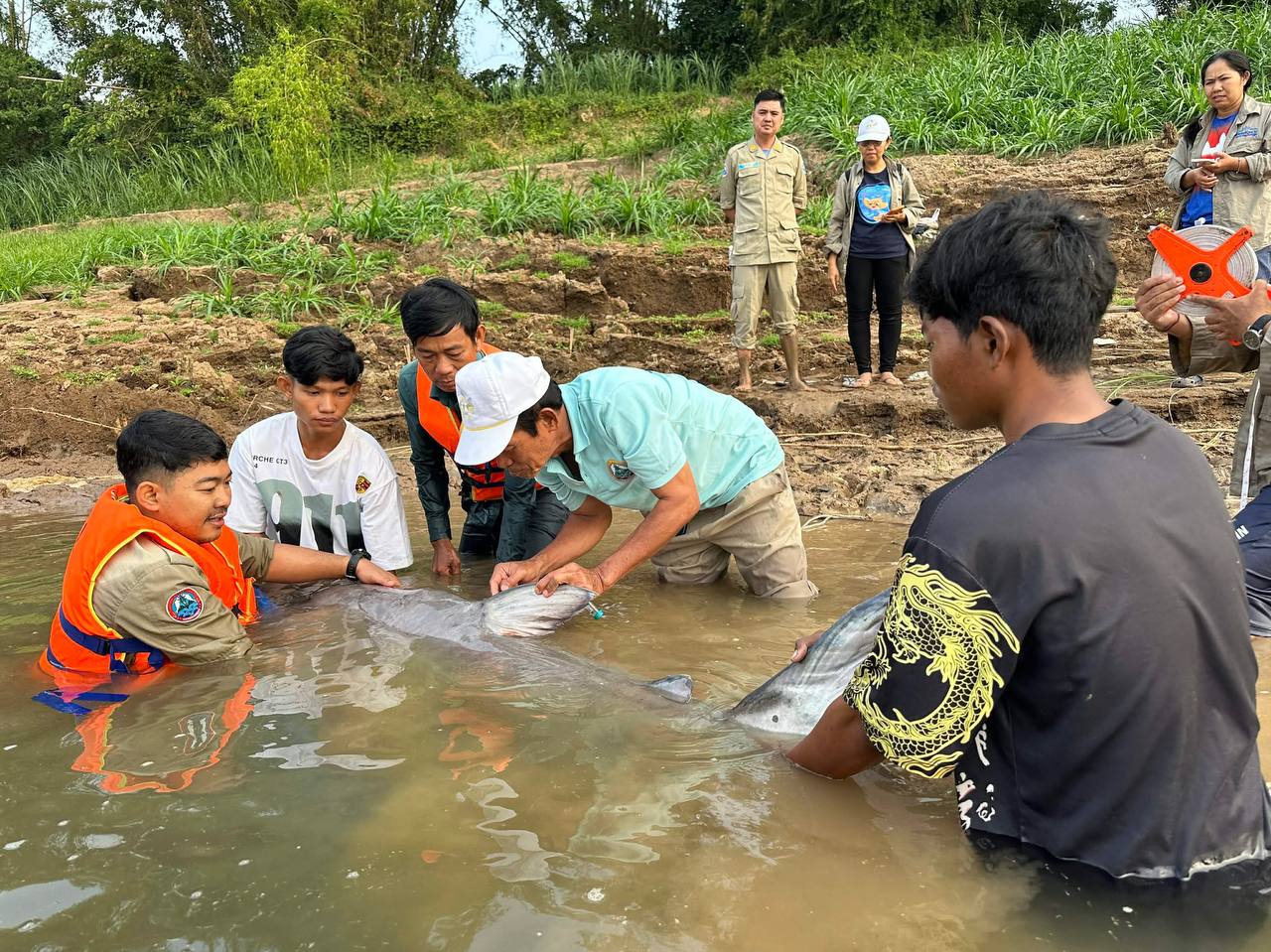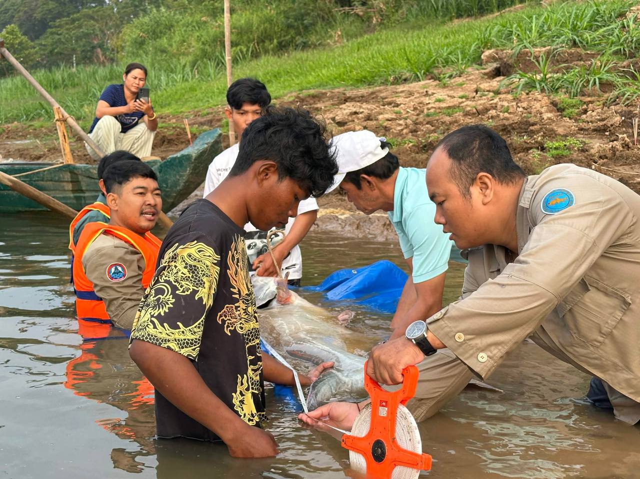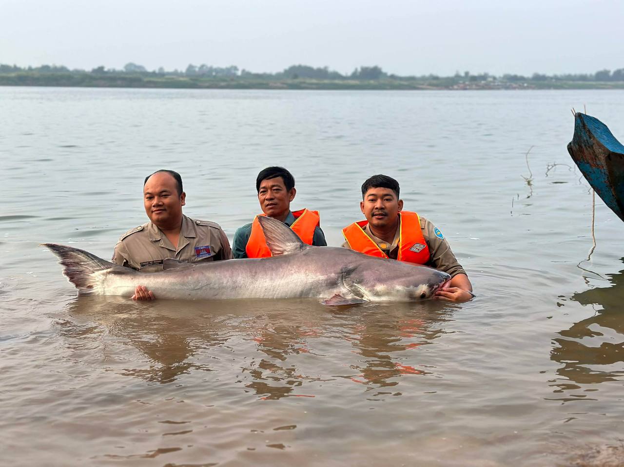 ក្រោយពីកំណត់អត្តសញ្ញាណដូចខាងលើរួច ក្រុមការងារមានអាជ្ញាធរស្រុកកងមាស មន្ត្រីនៃរដ្ឋបាលជលផលខណ្ឌរដ្ឋបាលជលផលកំពង់ចាម និងក្រុមការងារគម្រោងអច្ឆរិយភាពនៃទន្លេមេគង្គ ព្រមទាំងប្រជានេសាទបានលែងត្រីរាជនេះចូលក្នុងទន្លេមេគង្គវិញ ។