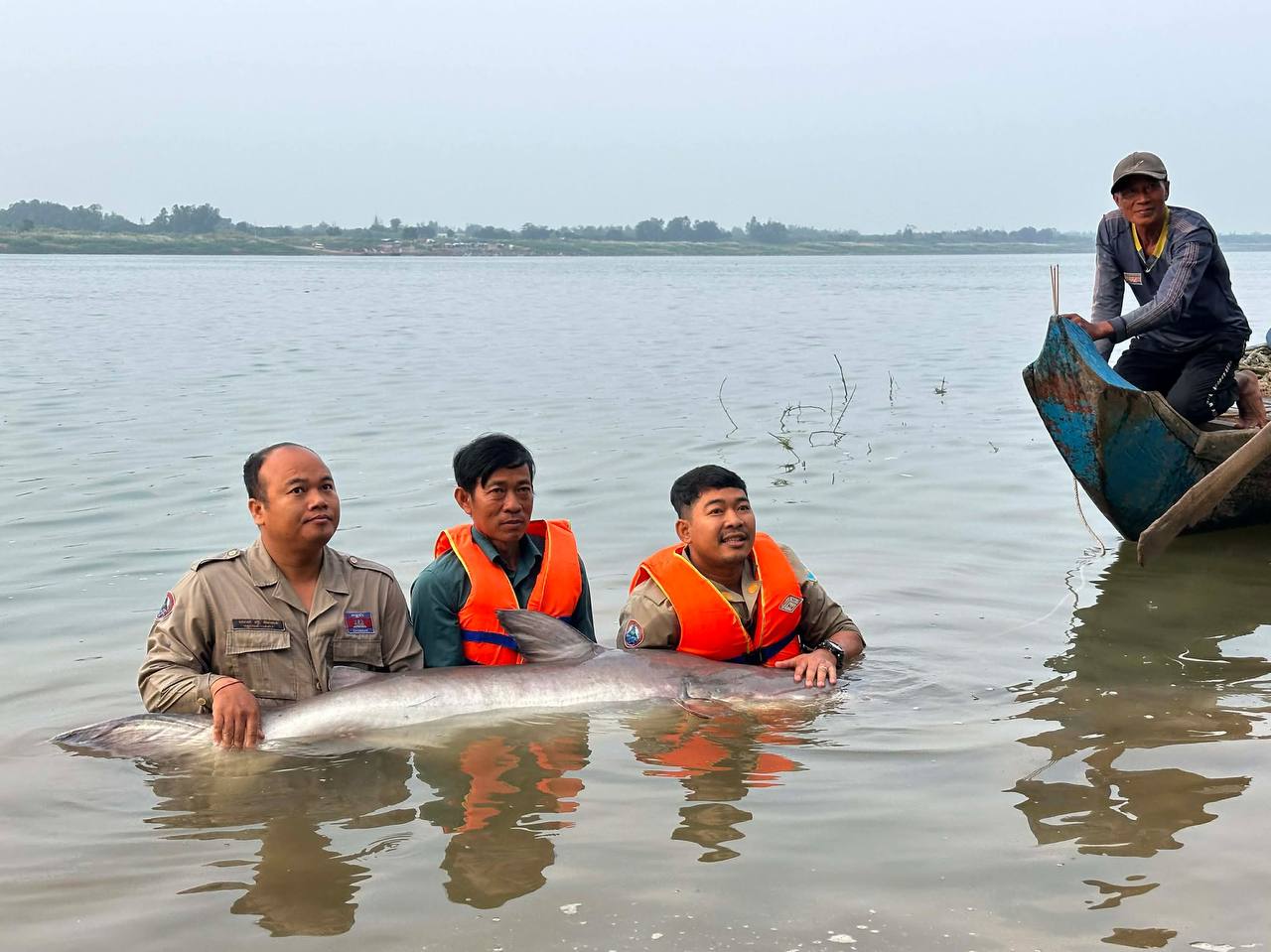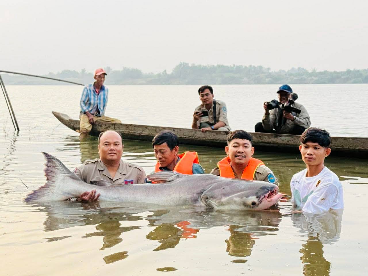 ខេត្តកំពង់ចាម ៖ ត្រីរាជមួយក្បាលទៀត ជាប់ម៉ាញ់របស់ប្រជានេសាទតាមដងទន្លេមេគង្គ ត្រូវបានលែងចូលទៅក្នុងទឹកទន្លេវិញ នាព្រឹកថ្ងៃទី១៩ ខែមករា ឆ្នាំ២០២៦ នៅចំណុចឃុំរកាគយ ស្រុកកងមាស ដោយមានការចូលរួមពីកម្លាំងអាជ្ញាធរមូលដ្ឋាន ព្រមទាំងមន្ត្រីជំនាញជលផល ។