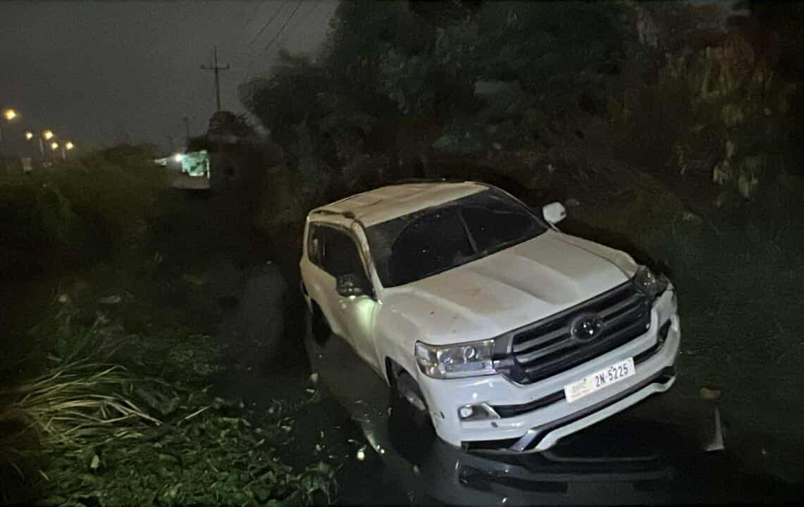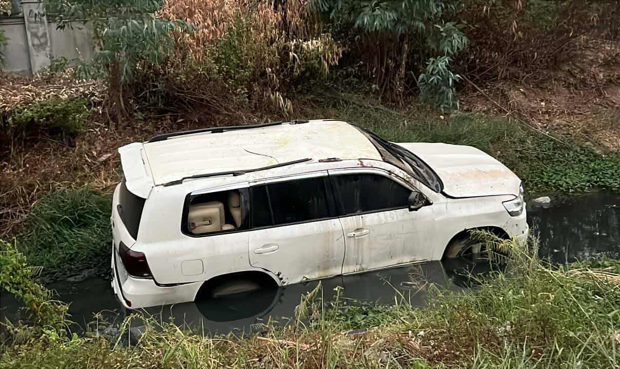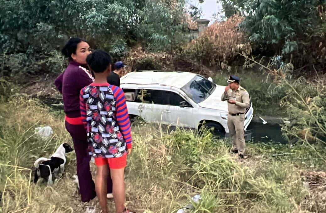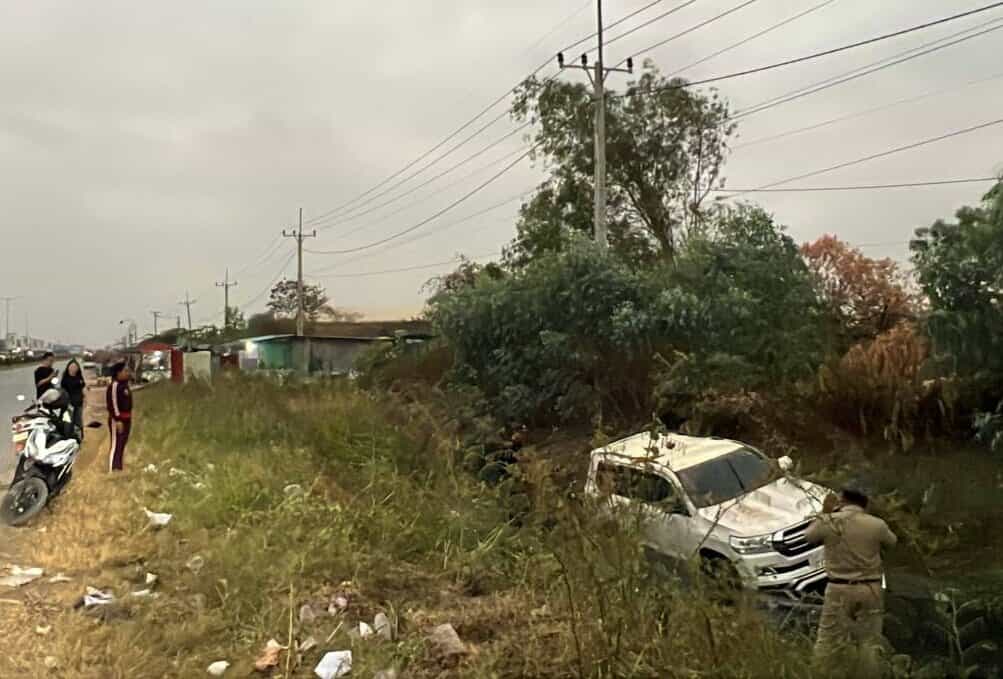 រថយន្តដែលធ្លាក់ប្រឡាយ ម៉ាកឡង់គ្រីស័រ ពណ៌ស ពាក់ស្លាកលេខភ្នំពេញ 2N-5225 បើកបរដោយជនជាតិចិន ពុំស្គាល់អត្តសញ្ញាណឡើយ បានគេចខ្លួនបាត់ពីកន្លែងកើតហេតុ ។