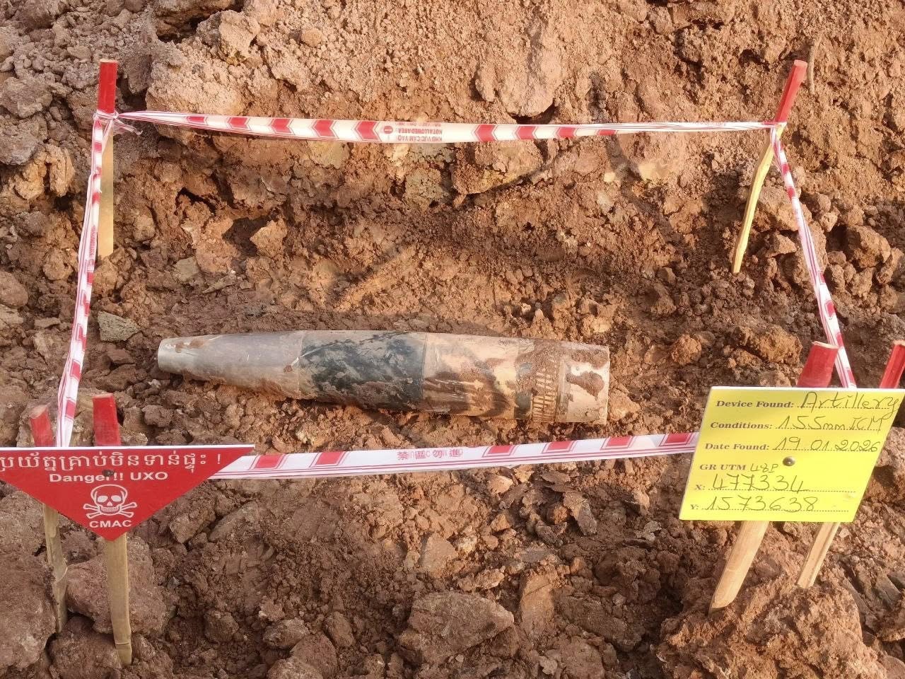 ជាក់ស្តែង លោក ហេង រតនា អគ្គនាយកស៊ីម៉ាក់ បានប្រកាសនាល្ងាចថ្ងៃទី១៩ ខែមករានេះថា ៖ នៅថ្ងៃទី១៩ ខែមករា ឆ្នាំ២០២៦នេះ នៅទិសស្រអែម ស្រុកជាំក្សាន្ត ខេត្តព្រះវិហារ កម្លាំងជំនាញអង្គភាព CMAC បានបោសសម្អាតគ្រាប់១៥៥មម សំណល់យុទ្ធភណ្ឌសង្គ្រាមសៀមឈ្លានពាន ។