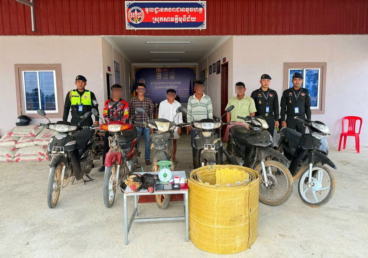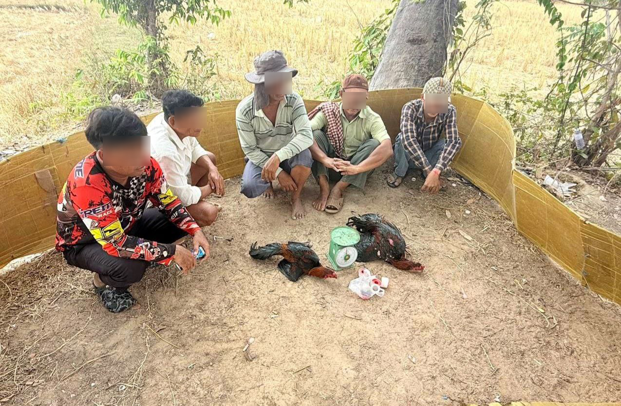 ខេត្តកំពង់ស្ពឺ ៖ អ្នកញៀនល្បែងជល់មាន់ចំនួន៥នាក់ ត្រូវបានកម្លាំងមូលដ្ឋានកងរាជអាវុធហត្ថស្រុកសាមគ្គីមុនីជ័យឃាត់ខ្លួនជាមួយខ្មោចអាគក២ក្បាលផងដែរ ខណៈដែលកំពុងតែប្រមូលផ្តុំគ្នា លេងល្បែងស៊ីសងជល់មាន់ក្នុងសង្វៀនមួយកន្លែង កាលពីព្រឹកថ្ងៃទី១៨ ខែមករា ឆ្នាំ២០២៦ ក្នុងសង្វៀនមួយកន្លែង នៅក្នុងភូមិទួល ឃុំព្រៃក្រសាំង ស្រុកសាមគ្គីមុនីជ័យ ខេត្តកំពង់ស្ពឺ ។