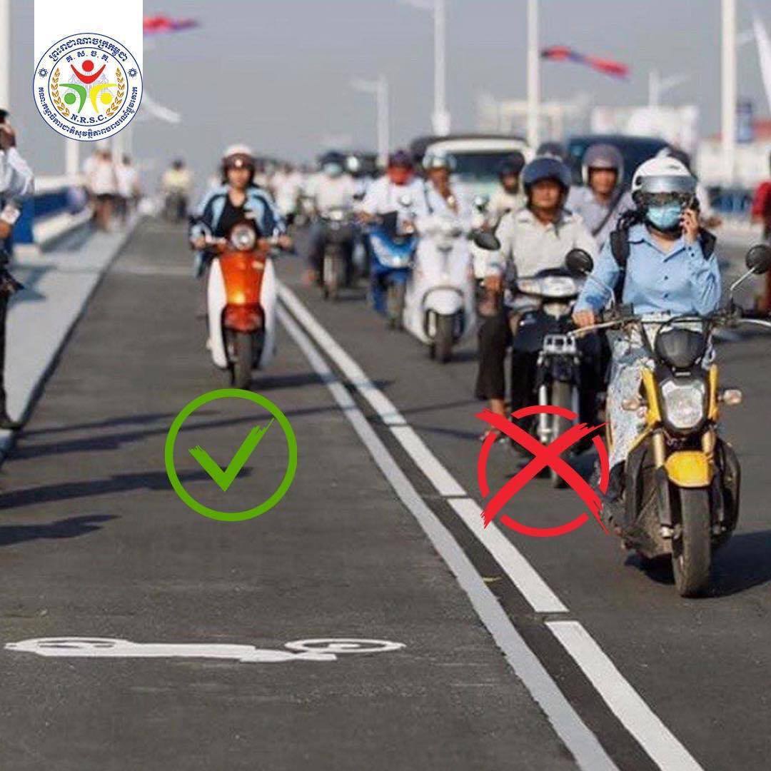 ជាក់ស្តែងបើយោងតាមតាមផេក ការិ.សុវត្ថិភាពចរាចរណ៍ខេត្តកណ្តាល បានប្រកាសនាពេលថ្មីៗនេះថា ៖ «អ្នកបើកបរទោចក្រយានយន្ត ត្រីចក្រយានយន្ត និងទោចក្រយានយន្តសណ្តោងរ៉ឺម៉ក ត្រូវបើករបរនៅគន្លងផ្លូវខាងស្តាំដៃបង្អស់ ស្របតាមទិសចរាចរណ៍របស់ខ្លួន ។ »
