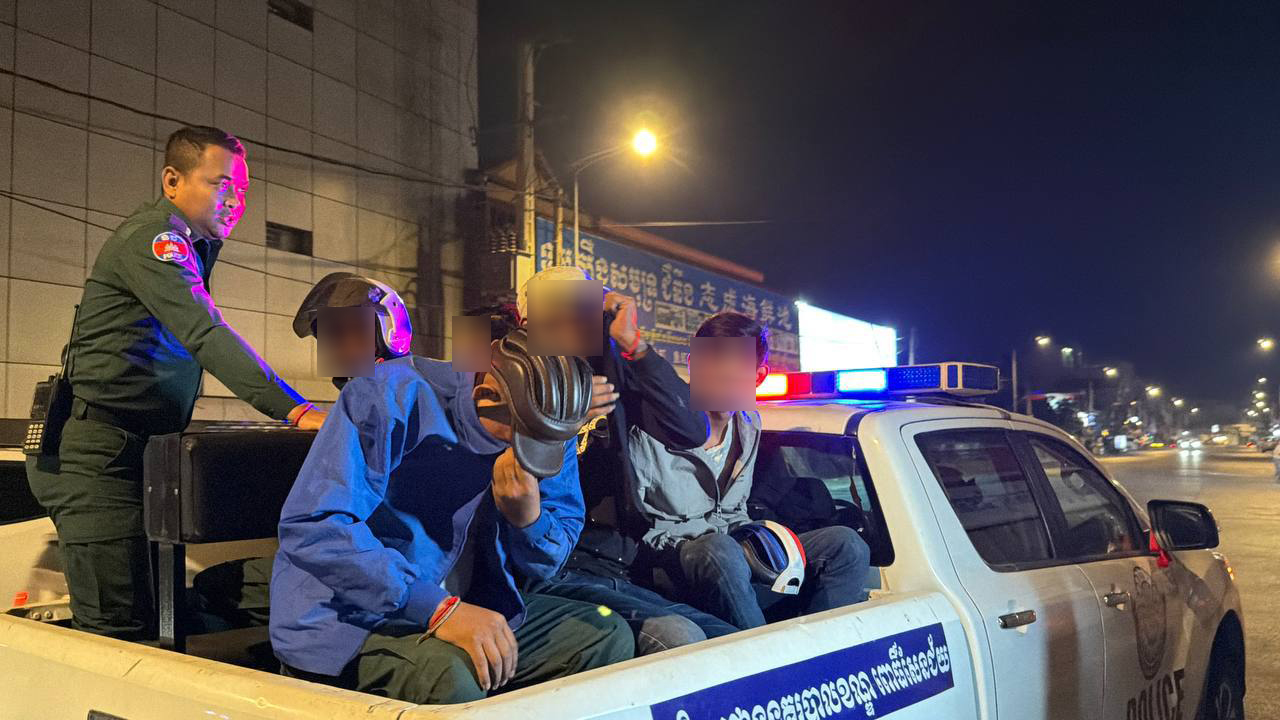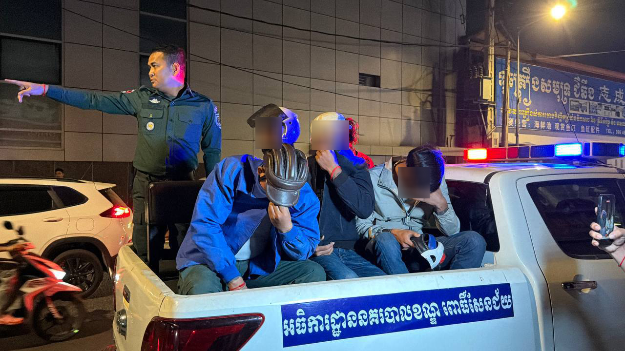 រាជធានីភ្នំពេញ ៖ ប៉ូលីសក្លែងក្លាយអស់ល័ក្ខណ៍មួយក្រុម ក្រោយស្ទាក់ឃាត់ខ្លួនប៉ះចំលោកអធិការងខណ្ឌពោធិ៍សែន ជ័យត្រូវសមត្ថកិច្ចក្របួចបាន៤នាក់ កាលពីវេលាម៉ោង១១យប់ ថ្ងៃទី២១ ខែមករា ឆ្នាំ២០២៦ នៅចំណុចផ្លូវបំបែកស្តុប២០០៤ កែងមហាវិថីសហព័ន្ធរុស្សី សង្កាត់កាកាប១ ខណ្ឌពោធិសែនជ័យ រាជធានីភ្នំពេញ ។