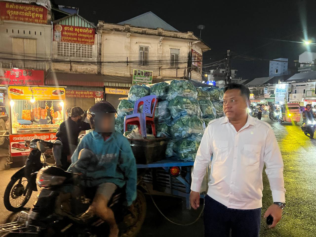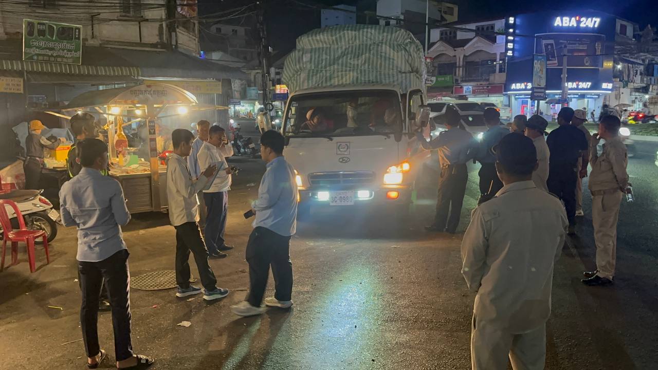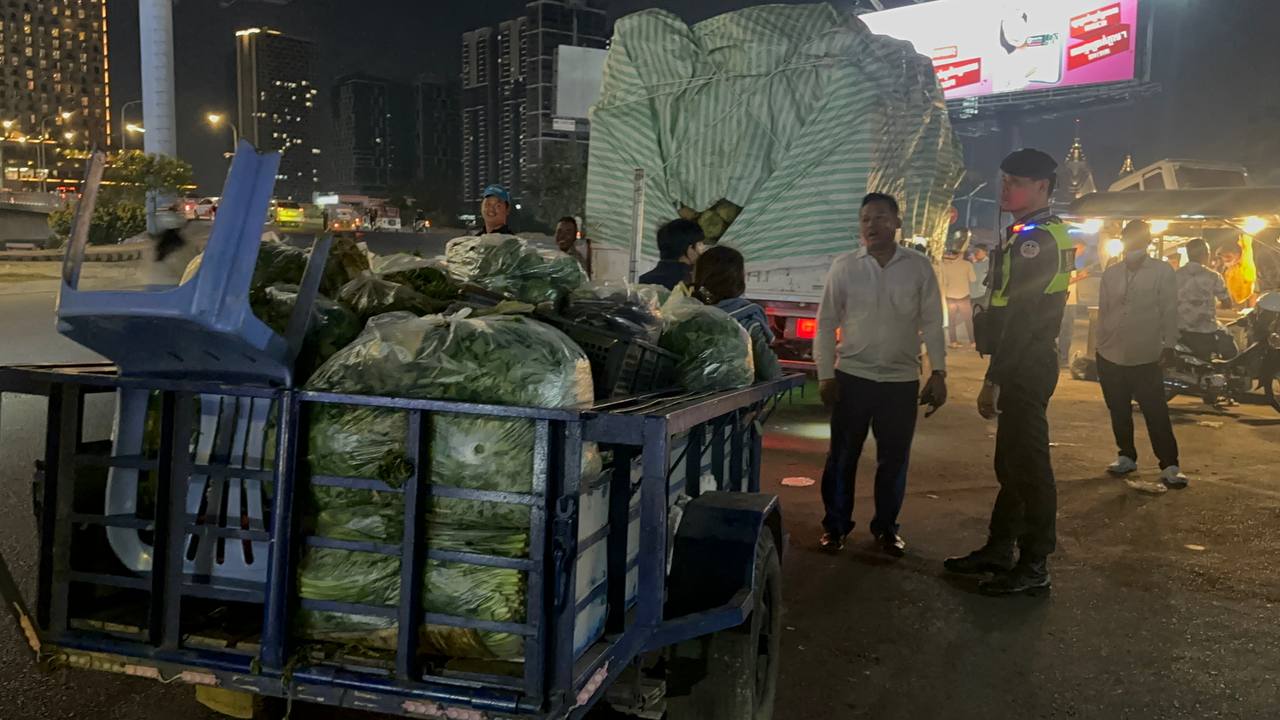 រាជធានីភ្នំពេញ ៖ នាយប់ថ្ងៃទី២១ ខែ មករា ឆ្នាំ ២០២៦ នៅចំណុចគល់ស្ពានព្រះមុនីវង្សចាស់ តាមផ្លូវជាតិលេខ១ សង្កាត់ច្បារអំពៅទី១ ខណ្ឌច្បារអំពៅ រាជធានីភ្នំពេញ អាជ្ញាធរខណ្ឌច្បារអំពៅបានឃាត់រថយន្តនិងរ៉ឺម៉កដឹកបន្លែផ្លែឈើពីខេត្តចូលទៅផ្សារដើមគរចាស់មិនអនុញ្ញាតនឹងអប់រំណែនាំអោយបើកបរទៅផ្សារព្រែកជ្រៃឬក៏ត្រូវទំលាក់ទំនិញបន្លែផ្លែឈើនៅត្រឹមផ្សារច្បារអំពៅ ។