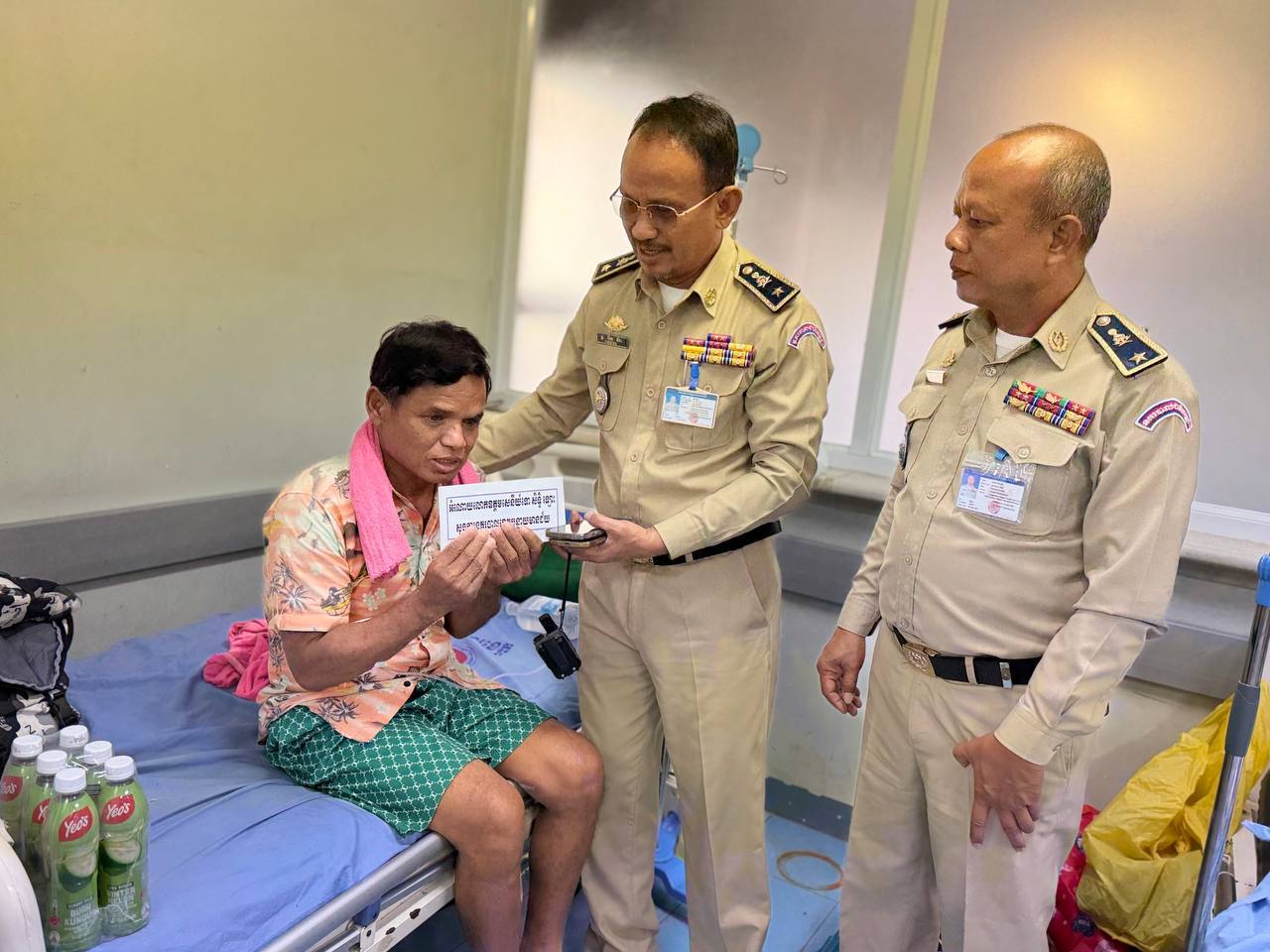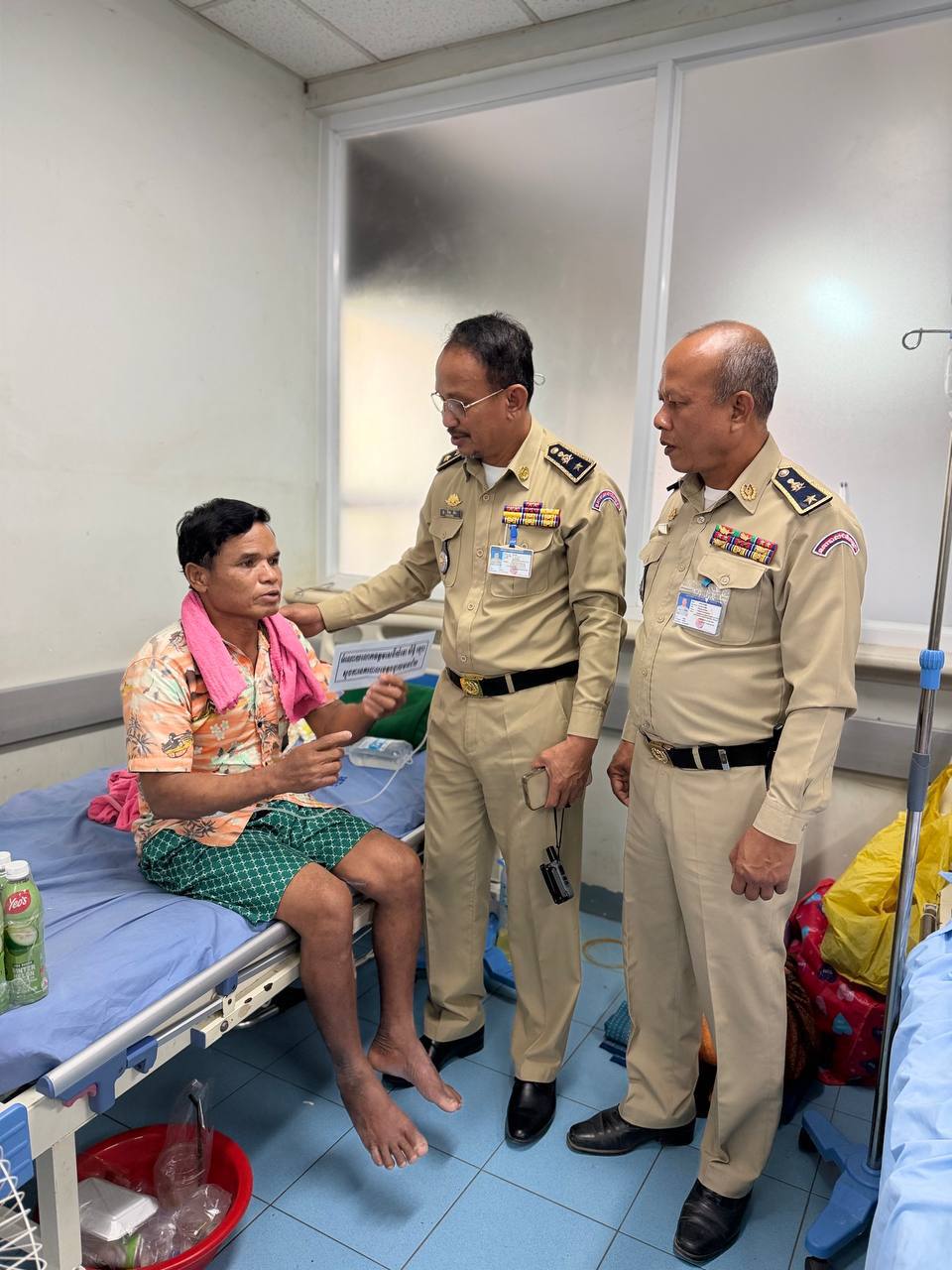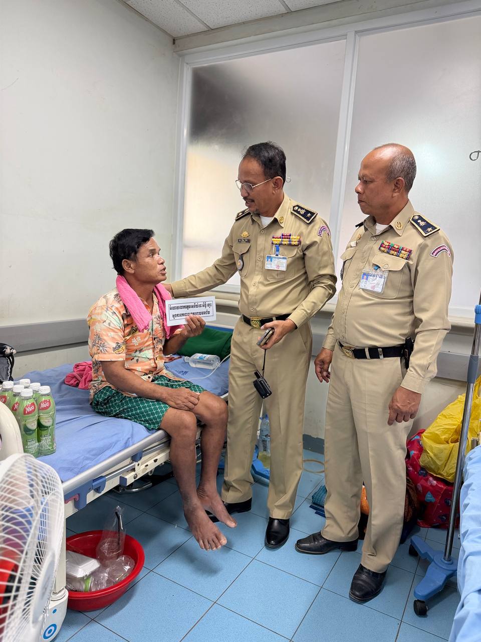ខេត្តបន្ទាយមានជ័យ ៖ នៅព្រឹកថ្ងៃទី ២១ ខែ មករា ឆ្នាំ២០២៦ លោកឧត្ដមសេនីយ៍ទោ សិទ្ធិ ឡោះ ស្នងការនគរបាលខេត្តបន្ទាយមានជ័យ បានចាត់លោកឧត្តមសេនីយ៍ត្រី រ៉ែម វីរៈ ស្នងការរង ផែនការងារសេនាធិការ លោកឧត្តមសេនីយ៍ត្រី ប៊ុន ផេង ស្នងការរងផែនការងារ អាវុធគ្រឿងផ្ទុះ អគ្គីភ័យ បាននាំយកអំណោយដ៏ថ្លៃថ្លារបស់ ឯកឧត្តម នាយឧត្តមសេនីយ៍ ស ថេត អគ្គស្នងការ នគរបាលជាតិ រួមមាន ថវិកា និងភេសជ្ជៈ សួរសុខទុក្ខ លោកអ៊ុ ប៉ុក សារុំ ភេទប្រុស អាយុ ៦៤ឆ្នាំ ជាប្រជាពលរដ្ឋ មានទីលំនៅបច្ចុប្បន្ន ភូមិបន្ទាយមានឬទ្ធិ ឃុំគោករមៀត ស្រុកថ្មពួក ខេត្តបន្ទាយមានជ័យ ដែលទាហារថៃចាប់ខ្លួនបានកាលពីថ្ងៃទី ២៥ ខែធ្នូ ឆ្នាំ ២០២៥ ហើយបានបញ្ជូនត្រឡប់មកវិញនៅថ្ងៃទី ២០ ខែ មករា ឆ្នាំ ២០២៦ ហើយកំពុងសំរាកព្យាបាលជំងឺនៅមន្ទីរពេទ្យមិត្តភាព-កម្ពុជាជប៉ុន ស្រុកមង្គលបូរី ។