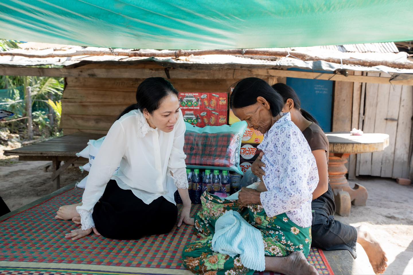 ឆ្លៀតក្នុងដំណើរនេះ លោកជំទាវបណ្ឌិត ថែមទាំងបានចូលសួរសុខទុក្ខលោកយាយរបស់វីរកងទ័ពកំពុងឈរជើងនៅព្រំដែន ដោយមានភ្ជាប់ជូននូវអំណោយជាថវិកា សម្ភារៈបរិក្ខារ និងគ្រឿងឧបភោគបរិភោគជូនលោកយាយ និងចៅស្រីដែលរស់នៅមើលថែយាយផងដែរ ។