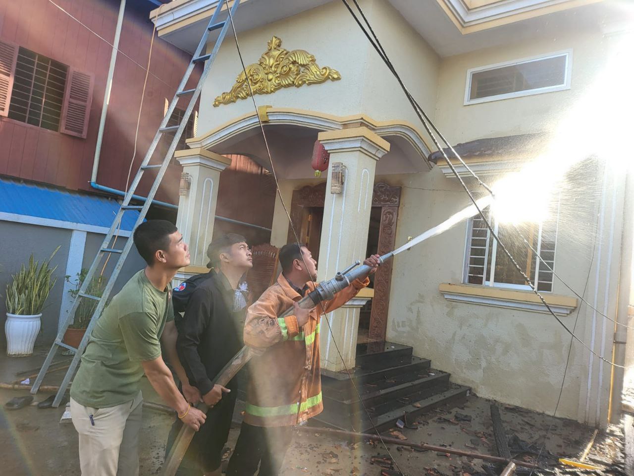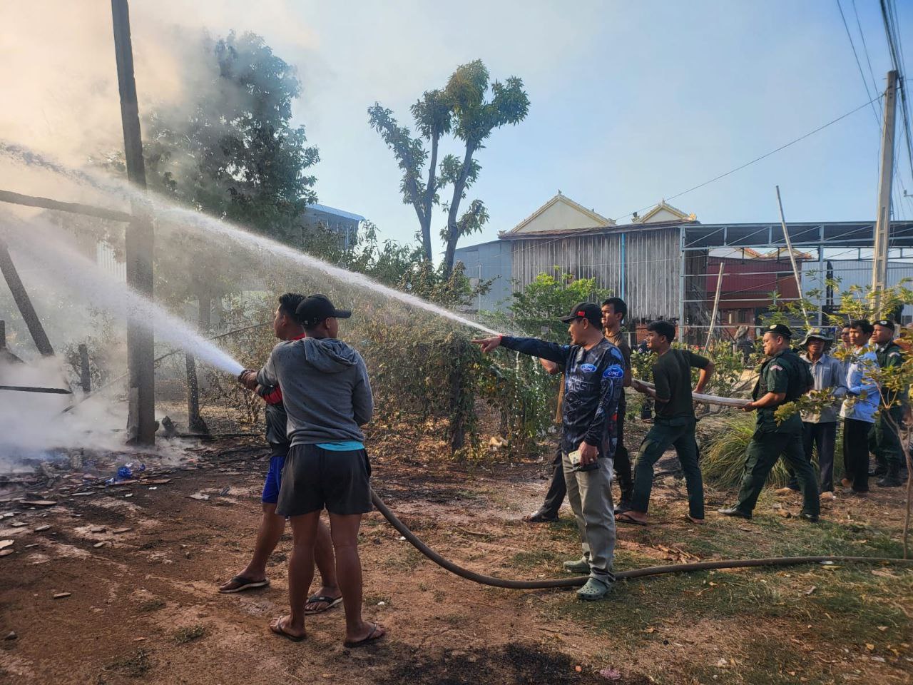 ប្រើប្រាស់ឡានពន្លត់អគ្គីភ័យចំនួន ៥គ្រឿង(ប្រើប្រាស់ទឹក ១០ស៊ីទែន) ឡានពន្លត់អគ្គីភ័យរបស់ស្នងការដ្ឋាននគរបាលខេត្តកំពង់ចាម ចំនួន ០២គ្រឿង(ប្រើប្រាស់ទឹកអស់ ២ស៊ីទែន) ឡានពន្លត់អគ្គីភ័យរបស់អធិការដ្ឋាននគរបាលស្រុកស្ទឹងត្រង់ ចំនួន០១គ្រឿង (ប្រើប្រាស់ទឹកអស់ ០១ស៊ីទែន)