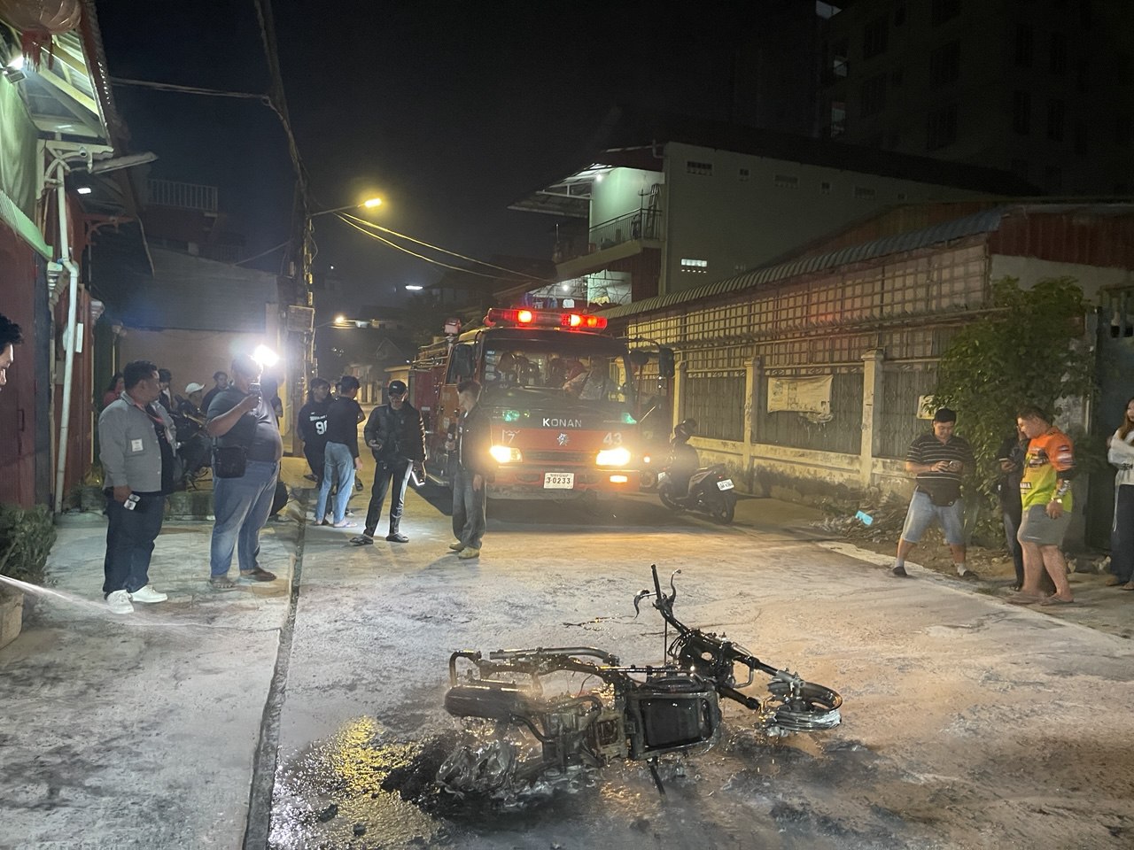 រាជធានីភ្នំពេញ ៖ បុរសជនជាតិចិនម្នាក់មិនថាមានបញ្ហាអ្វីនោះទេ ស្រាប់តែដុតម៉ូតូមួយគ្រឿងឆេះយ៉ាងសន្ធោសន្ធៅ នៅសល់តែគ្រោងឆ្អឹងដែក បង្កការភ្ញាក់ផ្អើលនៅវេលាម៉ោង២និង៤០នាទីរំលង