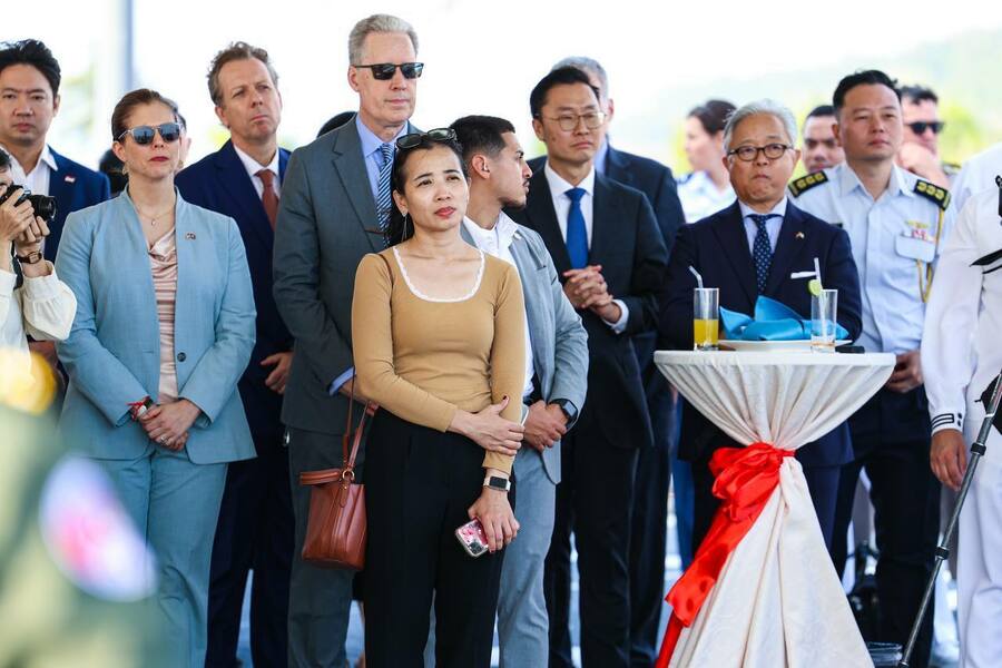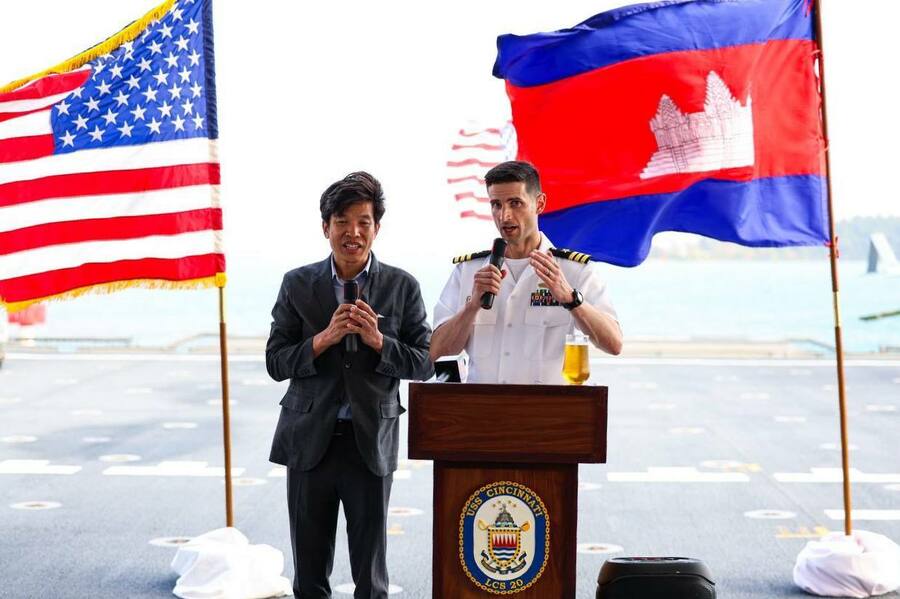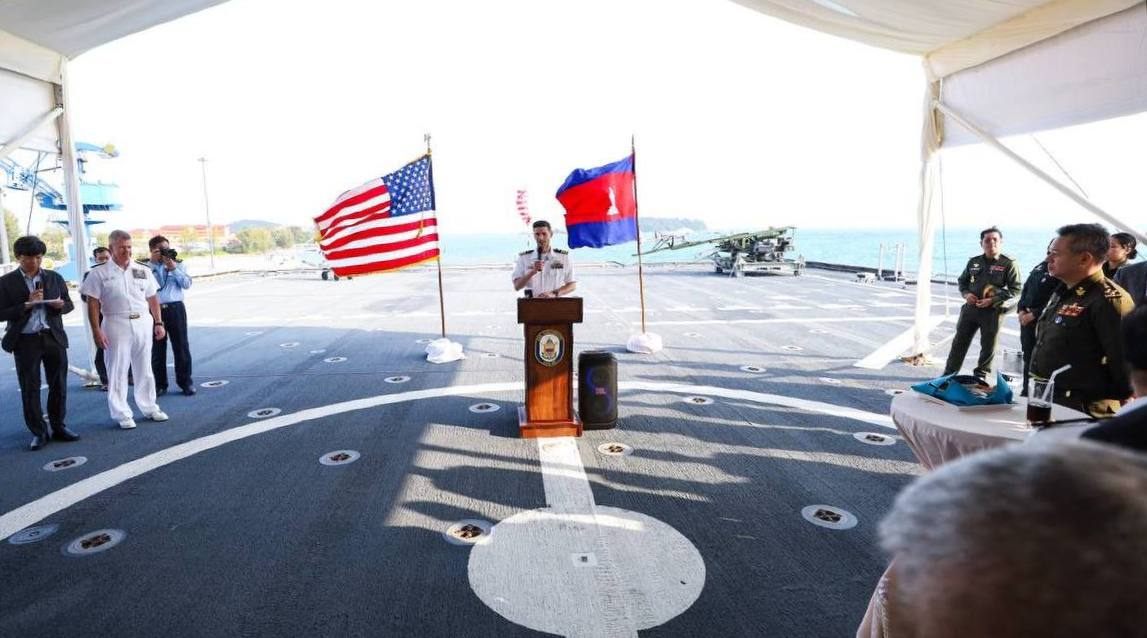 ឯកឧត្តម ទៀ សីហា ដឹកនាំប្រតិភូ ទស្សនកិច្ច និងចូលរួមជប់លៀងស្វាគមន៍ នៅលើនាវាចម្បាំងរបស់អាមេរិក ក្នុងមូលដ្ឋានសមុទ្ររាម
