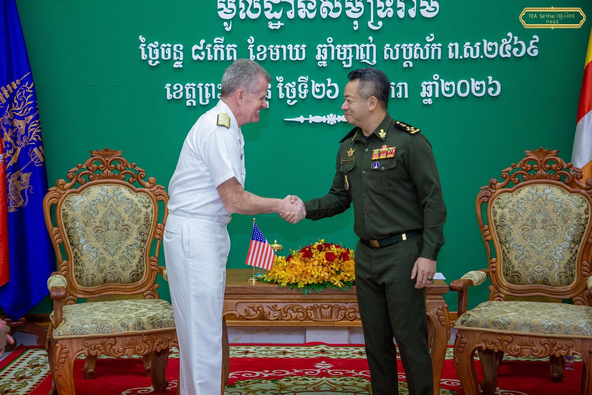 ជាក់ស្តែងក្រសួងការពារជាតិ បានប្រកាសនាព្រឹកថ្ងៃទី២៧ខែមករា ឆ្នាំ២០២៦នេះថា ៖ ឯកឧត្តម នាយឧត្តមសេនីយ៍ ទៀ សីហា ឧបនាយករដ្ឋមន្ត្រី រដ្ឋមន្ត្រីក្រសួងការពារជាតិ ទទួលស្វាគមន៍ ឯកឧត្តមនាយឧត្តមនាវី Samuel Paparo មេបញ្ជាការនៃបញ្ជាការដ្ឋានឥណ្ឌូ-ប៉ាស៊ីហ្វិក នៃសហរដ្ឋអាមេរិក ក្នុងជំនួបសម្តែងការគួរសម និងពិភាក្សាការងារ និងឡើងទស្សនកិច្ចលើនាវាចម្បាំងអាមេរិក USS CINCINNATI (LCS 20) ដែលបានចូលសំចតនៅមូលដ្ឋានសមុទ្ររាម ខេត្តព្រះសីហនុ ពីថ្ងៃទី២៤ ដល់ថ្ងៃទី២៨ ខែមករា ឆ្នាំ២០២៦ ដើម្បីលើកកម្ពស់ទំនាក់ទំនង និងកិច្ចសហប្រតិបត្តិការរវាងកងទ័ពជើងទឹកកម្ពុជា-អាមេរិក ដែលប្រព្រឹត្តទៅនៅ មូលដ្ឋានសមុទ្ររាម។