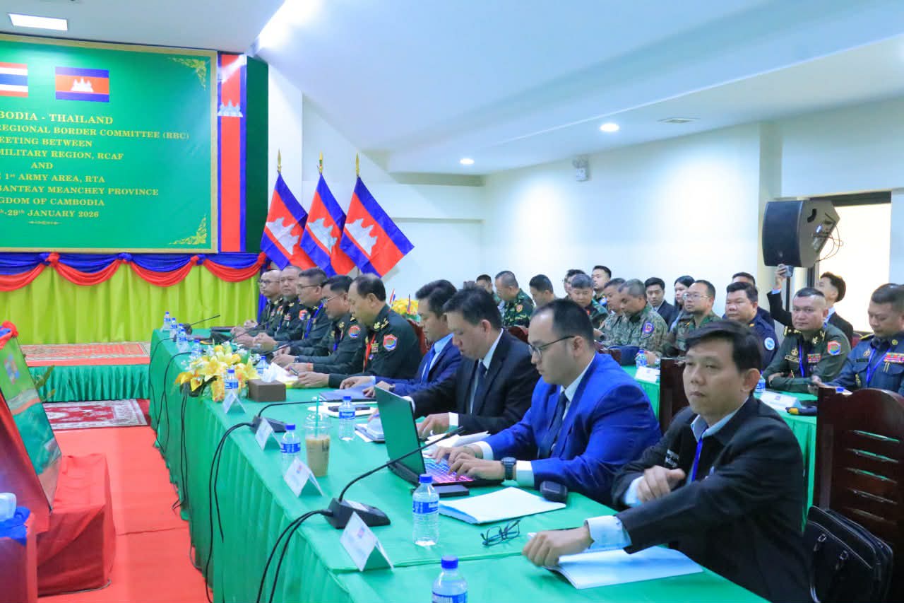 លោកជំទាវអ្នកនាំក្រសួងការពារជាតិ នៃព្រះរាជាណាចក្រកម្ពុជាបានឲ្យដឹងថា នៅរសៀលថ្ងៃទី២៧ ខែមករា ឆ្នាំ២០២៦ នេះ កិច្ចប្រជុំក្រុមលេខាធិការដ្ឋាននៃគណៈកម្មាធិការព្រំដែនថ្នាក់យោធភូមិភាគកម្ពុជា-ថៃ (RBC) យោធភូមិភាគទី៥ ភាគីកម្ពុជា និងកងទ័ពភូមិភាគទី១ ភាគីថៃ បានចាប់ផ្តើមកិច្ចប្រជុំរបស់ខ្លួនហើយ នាវេលាម៉ោង១៤:០០នាទី នៅច្រកអន្តរជាតិប៉ោយប៉ែត ខេត្តបន្ទាយ មានជ័យ ព្រះរាជាណាចក្រកម្ពុជាទល់នឹងខេត្តស្រះកែវ ព្រះរាជាណាចក្រថៃ ។