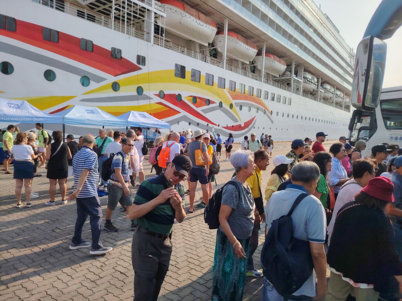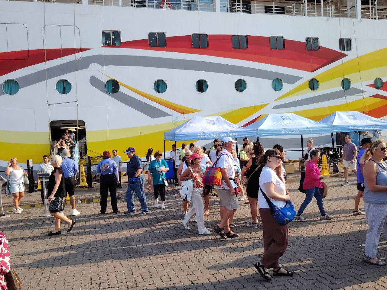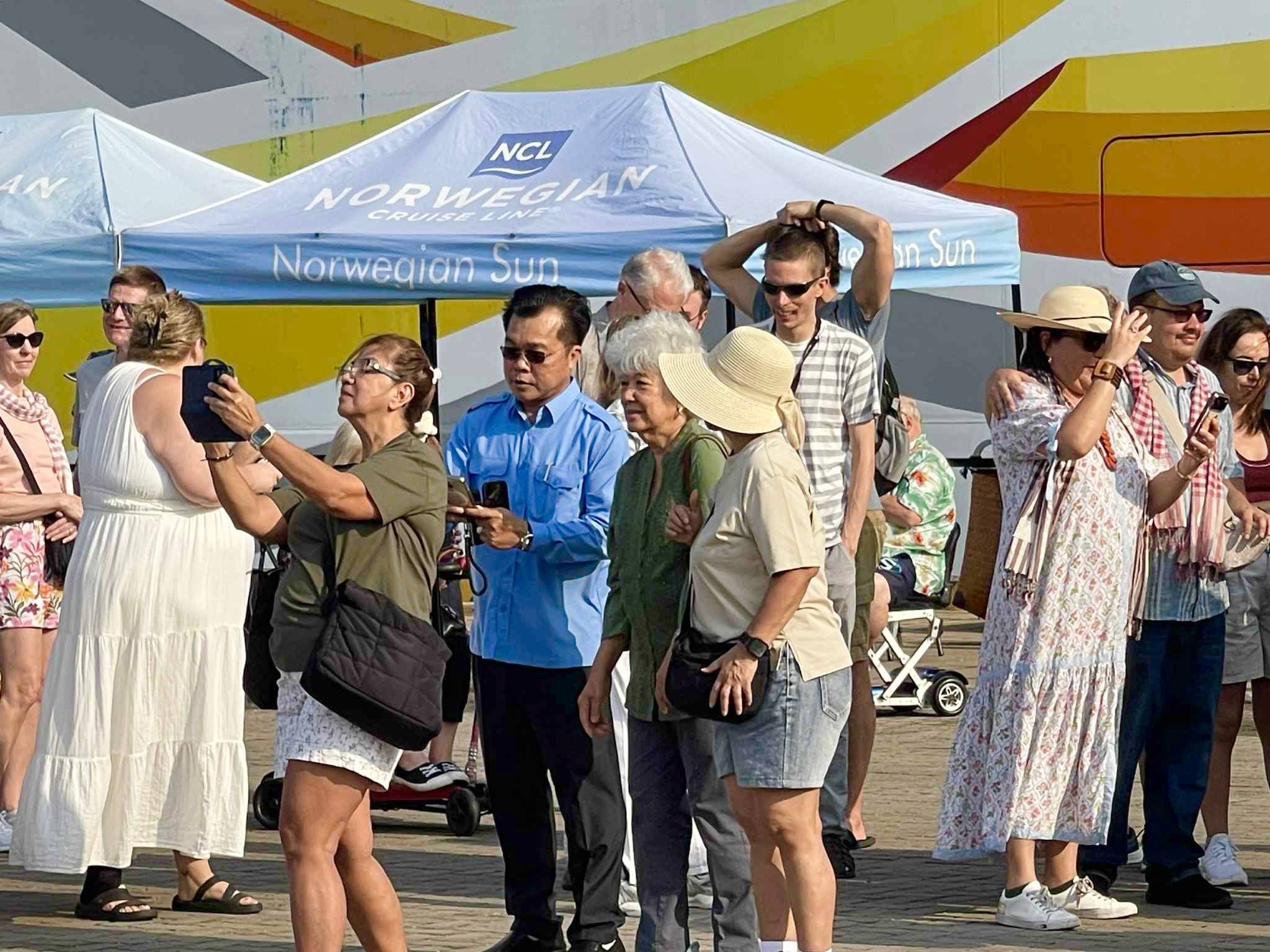 នាវេលាម៉ោង ៨:១០ នាទី ថ្ងៃដដែល នាវាទេសចរណ៍ ឈ្មោះ NORWEGIAN SUN សញ្ជាតិ BAHAMAS ដែលមានប្រវែងបណ្តោយ ២៥៨,៦០ ម៉ែត្រ ប្រវែងទទឹង ៣២,០០ ម៉ែត្រ ជម្រៅ ៨,២០ ម៉ែត្រ បានចូលចតនៅ ក.ស.ស. ដោយសុវត្ថិភាព ក្នុងគោលបំណងមកទស្សនា ប្រទេសកម្ពុជា រយៈពេល ១ ថ្ងៃ បន្ទាប់ពីចេញដំណើរមកពីប្រទេសវៀតណាម។ នាវាទេសចរណ៍នេះ មាននាវិកសរុបចំនួន ៩០២ នាក់ (ស្រី ២០៦ នាក់) មាន ៤៨ សញ្ជាតិ។ និងមានភ្ញៀវទេសចរណ៍សរុបចំនួន ១,៨៦៨ នាក់ (ស្រី ១,០០៥ នាក់) មាន ៤២ សញ្ជាតិ។ ចំនួនសញ្ជាតិដែលមានភ្ញៀវច្រើនជាងគេ គឺសហរដ្ឋអាមេរិក (៦២៩) និងអង់គ្លេស (៤០៤) ហើយនាវាទេសចរណ៍នេះ នឹងចាកចេញទៅប្រទេសថៃ នៅវេលាម៉ោង ១៧:០០ នាទី នៅថ្ងៃដដែល ៕