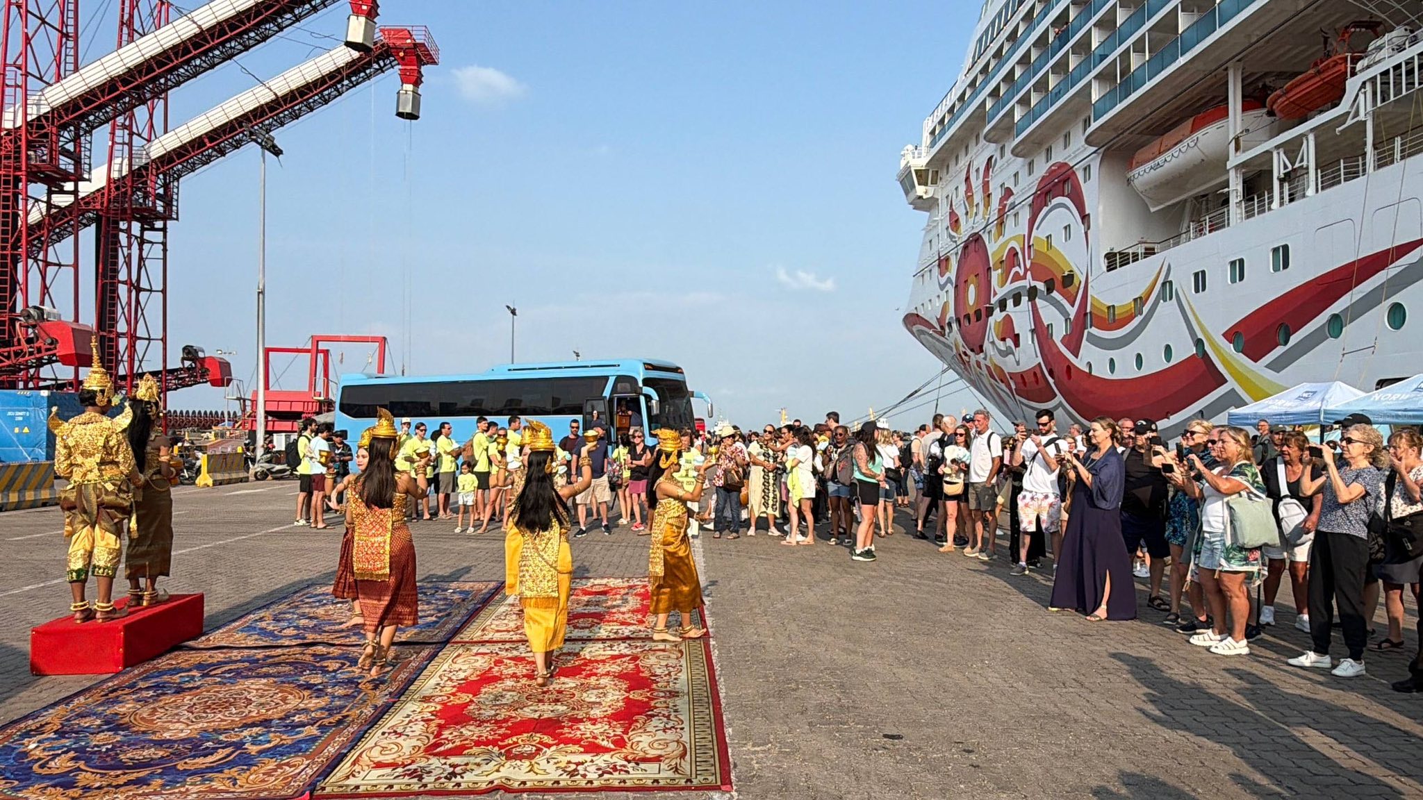 ខេត្តព្រះសីហនុ ៖ ព្រឹកថ្ងៃទី២៧ ខែមករា ឆ្នាំ២០២៦ នាវាទេសចរណ៍ ២គ្រឿង ទី១-ឈ្មោះ SEA BOURN ENCORE សញ្ជាតិ BAHAMAS និងទី២-ឈ្មោះ NORWEGIAN SUN សញ្ជាតិ BAHAMAS បានចូលចតនៅកំពង់ផែស្វយ័តក្រុងព្រះសីហនុ (ក.ស.ស.) ។