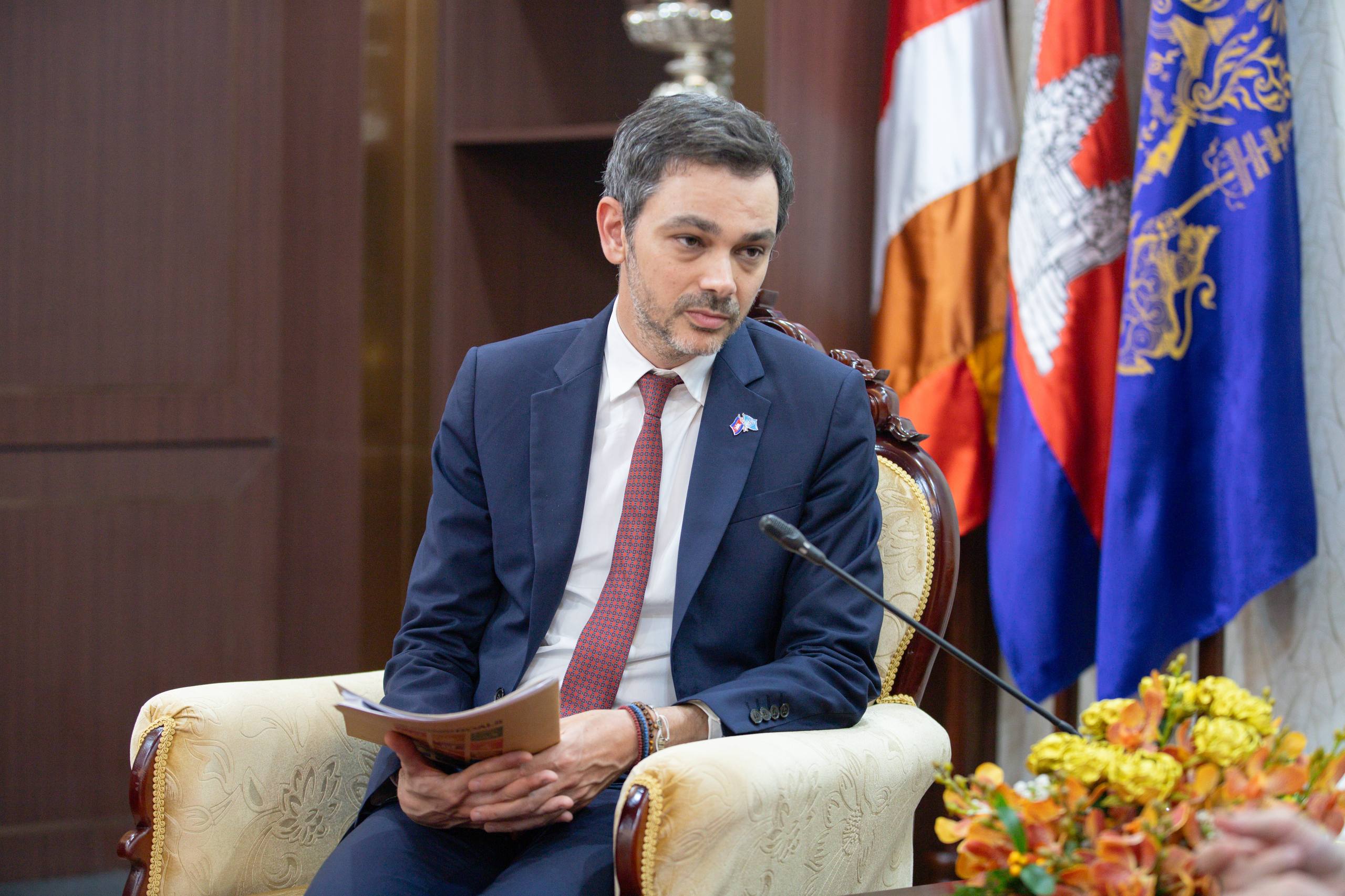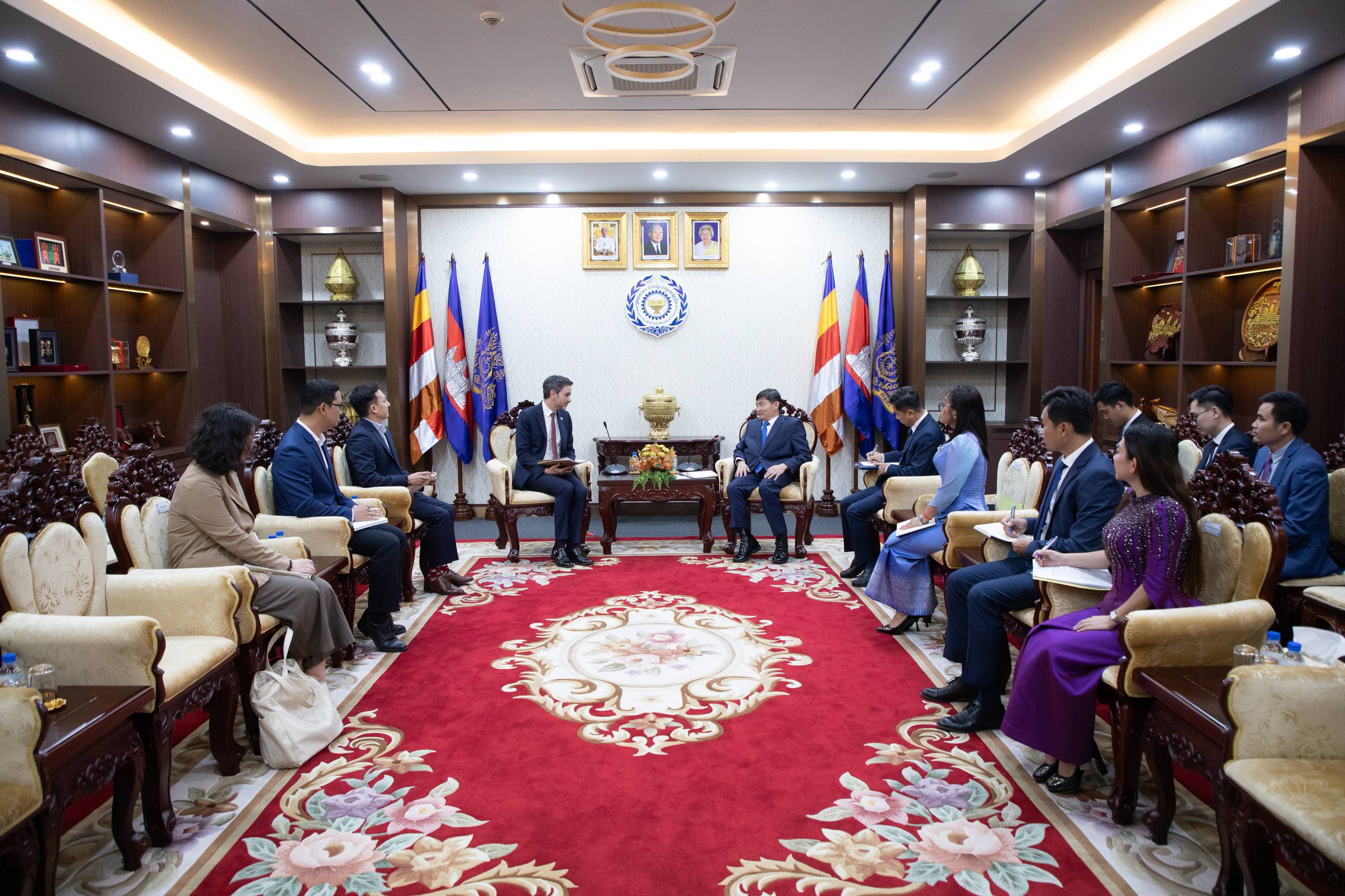 រាជធានីភ្នំពេញ ៖ នាទីស្តីការក្រសួង រសៀលថ្ងៃទី ២៧ ខែមករា ឆ្នាំ ២០២៦ ឯកឧត្តម ហេង សួរ រដ្ឋមន្ត្រីក្រសួងការងារ និងបណ្តុះបណ្តាលវិជ្ជាជីវៈ បានទទួលជួបសម្តែងការគួរសម និងពិភាក្សាការងារជាមួយ ឯកឧត្តម Flavio Bonetti តំណាងអង្គការយូណេស្កូ (UNESCO) ថ្មីប្រចាំកម្ពុជា ដើម្បីពង្រឹងកិច្ចសហប្រតិបត្តិការលើវិស័យការងារ និងការបណ្ដុះបណ្ដាលបច្ចេកទេស និងវិជ្ជាជីវៈឱ្យកាន់តែមានសក្តានុពល ។