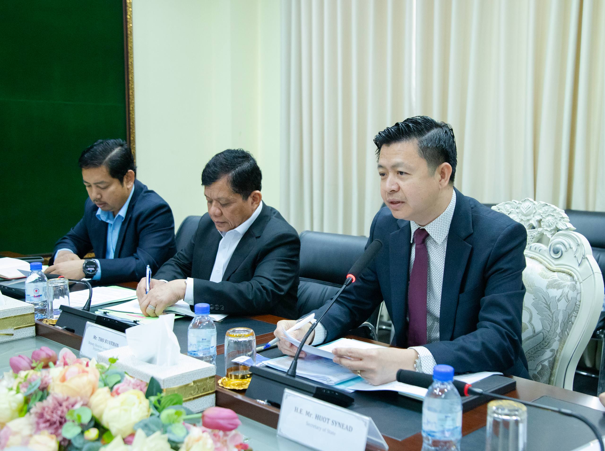 រាជធានីភ្នំពេញ ៖ ឯកឧត្តម ហួត ស៊ីនាដ រដ្ឋលេខាធិការ ក្រសួងការងារ និងបណ្តុះបណ្តាលវិជ្ជាជីវៈ ទទួលជួបសម្តែងការគួរសម និងពិភាក្សាការងារជាមួយលោក សាសាហារ៉ា កេនជិ (SASAHARA Kenji) នាយកសាលាអន្តរជាតិជប៉ុន CIESF Leaders Academy (CLA) និងសហការី នាព្រឹកថ្ងៃទី២៨ ខែមករា ឆ្នាំ២០២៦ នាទីស្ដីការក្រសួង ដើម្បីពង្រឹងកិច្ចសហការលើផ្នែកបណ្តុះបណ្តាល និងការអនុវត្តបទប្បញ្ញត្តិការងារ ។