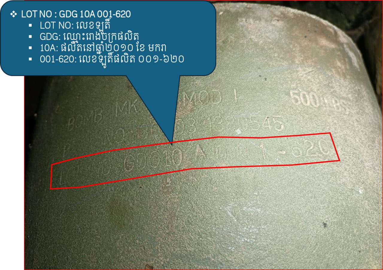 CMAC ដោះបន្សាបគ្រា.ប់បែកMK-82 ទម្ងន់ ២៣០គីឡូក្រាមដែលថៃទម្លាក់លើទឹកដីកម្ពុជា