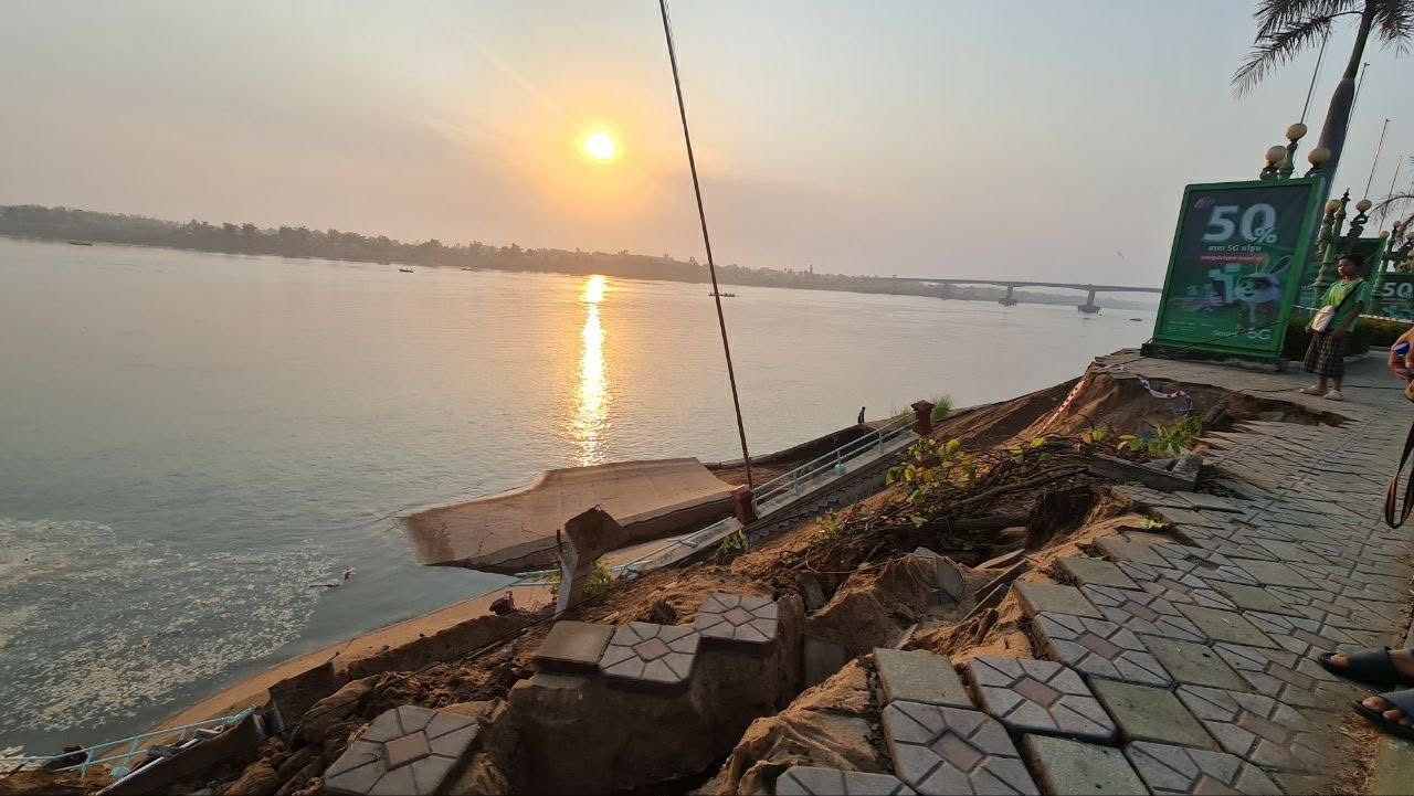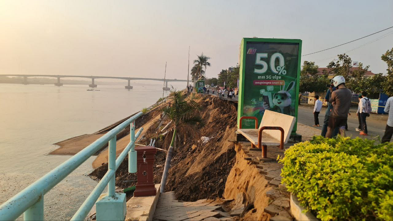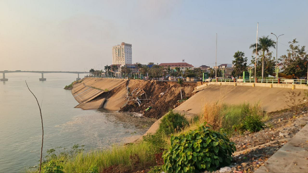 ខេត្តកំពង់ចាម ៖ ដោយសារកត្តាគ្រោះធម្មជាតិ ជាហេតុធ្វើឲ្យច្រាំងទន្លេ រួមទាំងសួនច្បារប្រវែងជិត១០០ម៉ែត្រ ស្ថិតនៅក្នុងសង្កាត់កំពង់ចាម ក្រុងកំពង់ចាមបានបាក់ស្រុត ចូលទៅក្នុងទឹកទន្លេមេគង្គ ។
