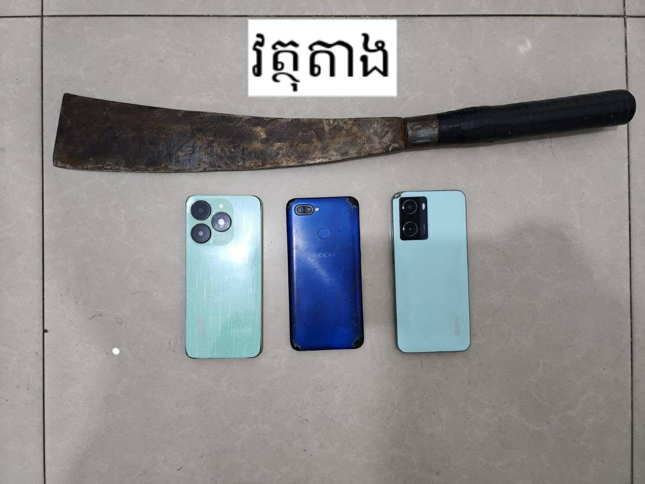 ៣-ទូរស័ព្ទដៃចំនួន០៣គ្រឿង(របស់ជនសង្ស័យ)។