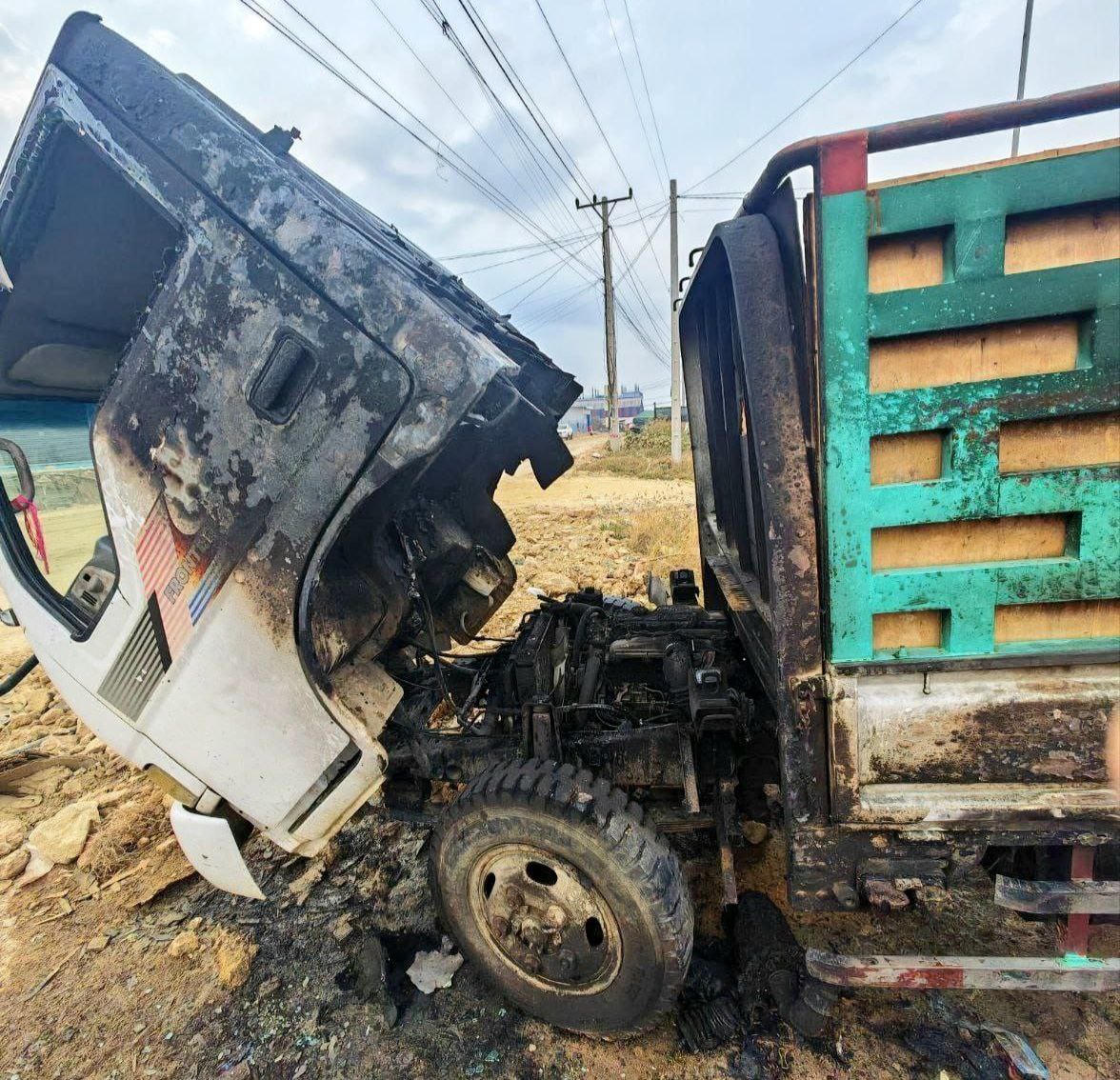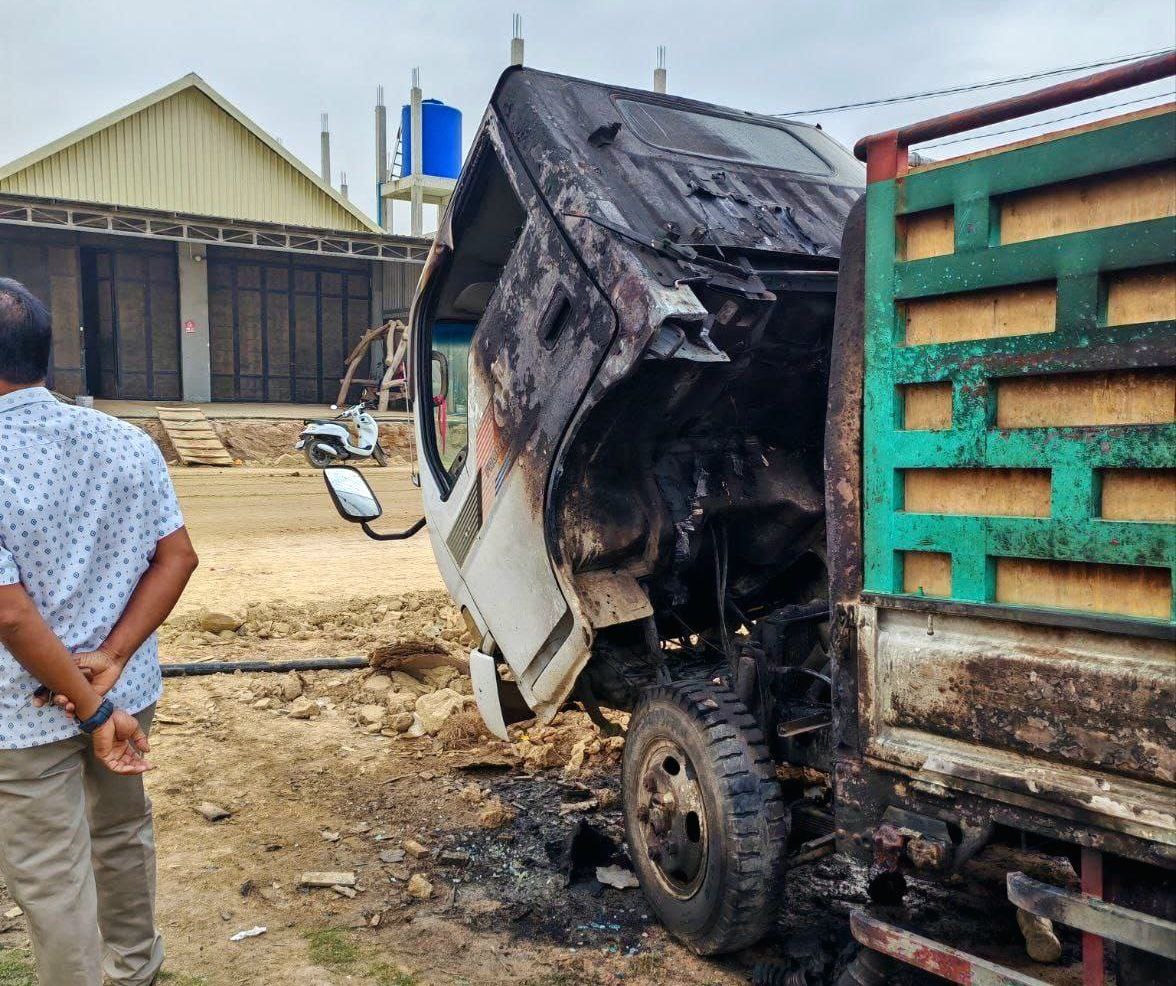 ខេត្តកំពង់ស្ពឺ៖ រថយន្តប្រភេទកូរ៉េដឹកទំនិញទម្ងន់១តោនកន្លះត្រូវបានឆាបឆេះបង្កឱ្យមានការភ្ញាក់ផ្អើលទាំងកណ្តាលថ្ងៃត្រង់ រងការខូចខាតមួយកំណាត់មុខធ្ងន់ធ្ងរ ខណៈដែលចតរថយន្តទុកមុខផ្ទះហើយមានជនដៃដល់ចំនួនពីរនាក់ជិះម៉ូតូឌុបគ្នាមកដុតតែម្តង ក្រោយកើតហេតុជិះគេចខ្លួនបាត់ស្រមោល។
