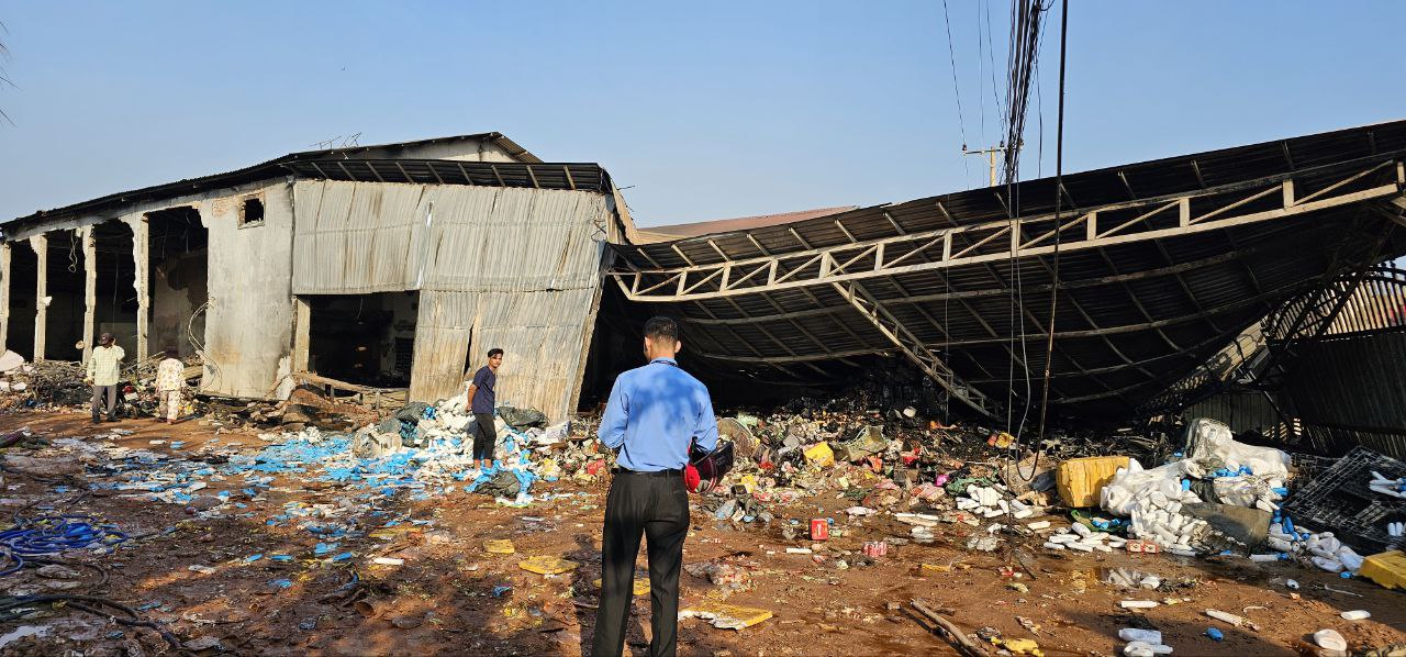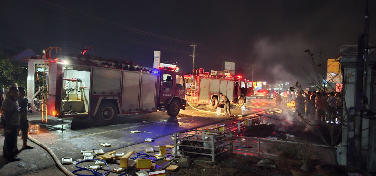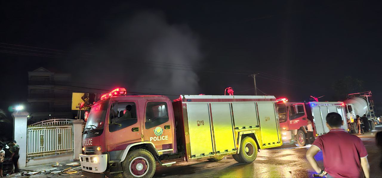 ខេត្តកំពត ៖ ឃ្លាំងដាក់ទំនិញមួយដែលគេដឹកមកពីប្រទេសវៀតណាមមកដាក់នៅជិតច្រកទ្វារព្រំដែនអន្តរជាតិព្រែកចាក ស្ថិតក្នុងភូមិថ្កូវ ឃុំឬស្សីស្រុកខាងលិច ស្រុកកំពង់ត្រាច ខេត្តកំពត ត្រូវអគ្គិភ័យឆាបឆេះបង្កការភ្ញាក់ផ្អើលកាលពីវេលាម៉ោង8និង30នាទីយប់ថ្ងៃទី1 ខែកុម្ភៈ ឆ្នាំ2026 ។