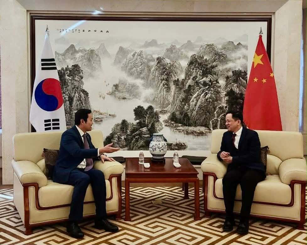 ឯកឧត្តម ឃួន ផុនរតនៈ ឯកអគ្គរាជទូតកម្ពុជាប្រចាំសាធារណរដ្ឋកូរ៉េ បានអញ្ជើញជួបសម្តែងការគួរសម និងពិភាក្សាការងារជាមួយ ឯកឧត្តម DAI Bing ឯកអគ្គរដ្ឋទូតសាធារណរដ្ឋប្រជាមានិតចិន ប្រចាំសាធារណរដ្ឋកូរ៉េ នៅស្ថានទូតចិន ក្នុងទីក្រុងសេអ៊ូលកាលពីពេលថ្មីៗនេះ ។