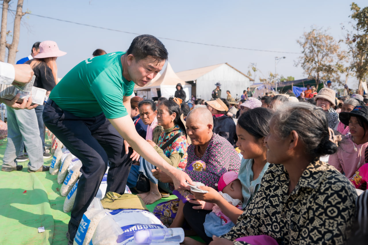គួរបញ្ជាក់ផងដែរថា ជីប ម៉ុង បានឧបត្ថម្ភដោយផ្ទាល់ ទាំងថវិកា ស្បៀងអាហារភេសជ្ជៈ តង់ស្នាក់នៅ សម្ភារៈប្រើប្រាស់ចាំបាច់ទៅកាន់វីរកងទ័ព និងជនភៀសសឹក សាង់សង់សាលារៀល សរុបប្រមាណ ៧ លានដុល្លារ ថែមទាំងចុះមកធ្វើម្ហូបឆ្ងាញ់ៗ និងកាត់សក់ជូនជនភៀសសឹក ។ ជីប ម៉ុង ក៏បានបញ្ជូនក្រុមការងារ ទៅជ្រើសរើសបុគ្គលិក ដល់ទីតាំងជំរុំភៀសសឹកផ្ទាល់ សម្ភាសន៍ភ្លាមៗ ផ្តល់ការងារជូនភ្លាមៗ ដល់បងប្អូនភៀសសឹក ។