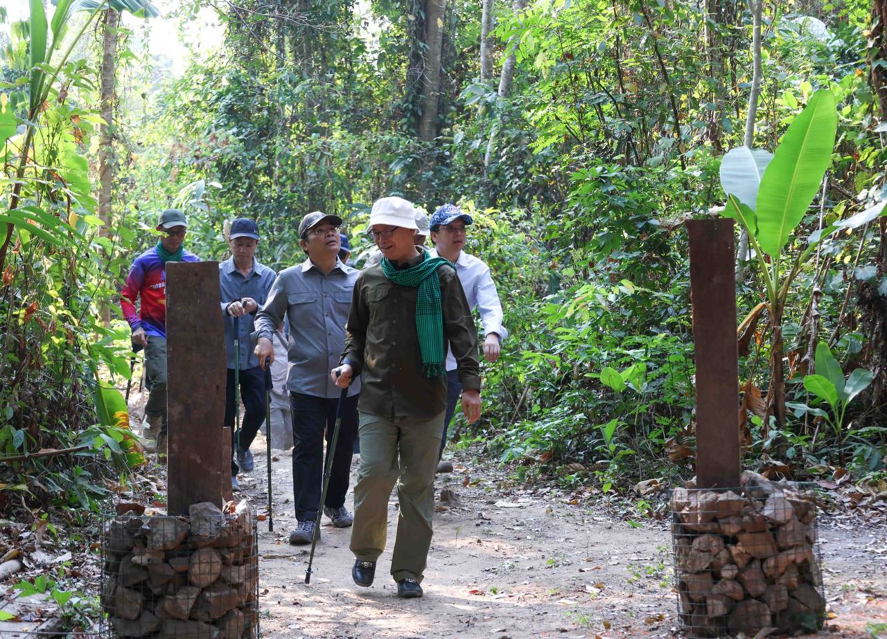 ប្រតិភូបានអញ្ជើញចូលរួមដាំដើឈើ«សន្តិភាព» នៅក្លោងទ្វាចូល ដំណាក់ដំរី ចំណុចជើងភ្នំ មុនឡើងទៅលើភ្នំខ្នងផ្សារ។ ឯកឧត្តមរដ្ឋមន្ត្រីទាំងពីរ រួមជាមួយអ្នកចូលរួមទាំងអស់ បានធ្វើដំណើរឡើងភ្នំដោយថ្មើជើង ចាប់ពីដំណាក់ដំរី ឆ្លងកាត់ដំណាក់នីមួយៗ ដែលបានសាងសង់រួចរាល់ ជាមួយកន្លែងអង្គុយសម្រាកលម្ហែដ៏ស្រស់ស្អាត អ្នកទេសចរណ៍អាចស្រូបយកខ្យល់អាកាសល្អបរិសុទ្ធ គយគន់ទេសភាពធម្មជាតិ រុក្ខជាតិ ផ្កាព្រៃជាដើម។ ជាមួយគ្នានេះ គម្រោងបានដាក់ស្លាកព័ត៌មាន ដែលបង្ហាញពីចម្ងាយផ្លូវ និងសារៈប្រយោជន៍នៃការឡើងភ្នំចំពោះសុខភាព នៅតាមកន្លែងសម្រាកនីមួយៗថែមទៀត។