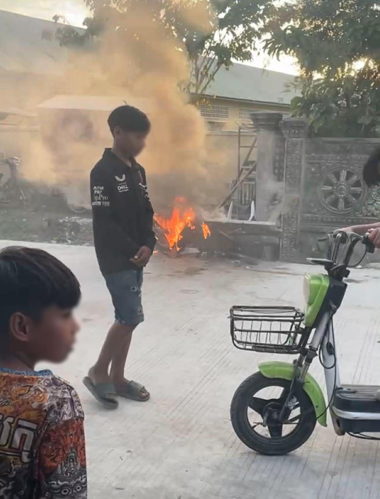 បើតាមប្រជាពលរដ្ឋរស់នៅកន្លែងកើតហេតុ បានឃើញក្មេងប្រុសម្នាក់ អាយុប្រមាណជា១៤ឆ្នាំ ឬ១៥ឆ្នាំ បានជិះម៉ូតូមួយគ្រឿង ម៉ាកហុងដាសេ១២៥ និងមានក្មេងប្រុសម្នាក់ទៀត អាយុប្រមាណ១៣ឆ្នាំ បានជិះកង់អាគុយ ១គ្រឿង ឌុបក្មេងប្រុសម្នាក់អាយុប្រមាណជា១០ឆ្នាំ ជិះតាមពីក្រោយ ។ លុះមកដល់ចំណុចកើតហេតុខាងលើ ស្រាប់តែក្មេងប្រុសបង្កហេតុនោះ បានឈប់ម៉ូតូហុងដា រួចផ្តួលម៉ូតូទៅលើចិញ្ចើមថ្នល់ រួចបង្ហូរសាំងពីម៉ូតូ ហើយកេះដែកកេះ ដុតម៉ូតូចោលតែម្តង ។ ភ្លើងឆាបឆេះយ៉ាងសន្ធោសន្ធៅម៉ូតូ១គ្រឿងឆេះអស់ នៅសល់តែគ្រោងឆ្អឹង ប្រជាពលរដ្ឋនៅជិតនោះ បានត្រឹមតែឈរមើល និងថតរូបភាពតែប៉ុណ្ណោះ ។ សមត្ថកិច្ច ដាក់ការសង្ស័យថា ក្មេងបង្កម្នាក់នេះ ទំនងជាបែកថ្នាំ (គ្រឿងញៀន)ហើយ បានជាមានចរិតបែបនេះ ៕