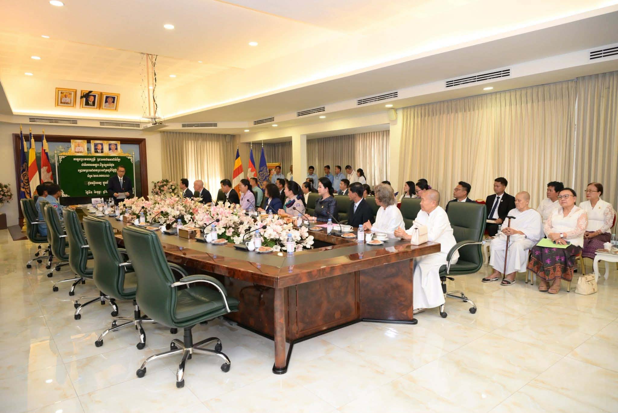ទូលព្រះបង្គំយើងខ្ញុំទាំងអស់គ្នា សូមព្រះបរមរាជានុញ្ញាតលំឱនកាយថ្វាយ នូវសេចក្ដីថ្លែងអំណរព្រះមហាករុណាទិគុណ និងកត្តញ្ញូតាធម៌ដ៏ជ្រាលជ្រៅបំផុតថ្វាយ សម្ដេចព្រះមហាក្សត្រី ព្រះវររាជមាតាជាតិខ្មែរ ជាទីគោរពសក្ការៈដ៏ខ្ពង់ខ្ពស់បំផុត និងសូមលំឱនកាយលើកអញ្ជលីប្រណមបួងសួងដល់គុណបុណ្យព្រះរតនត្រ័យ កែវទាំងបី ទេវតាថែរក្សាព្រះមហាស្វេតច្ឆ័ត្រ និងព្រះបារមី នៃអតីតព្រះមហាក្សត្រ ព្រះមហាក្សត្រីយានីខ្មែរគ្រប់ព្រះអង្គ និងវត្ថុស័ក្ដិសិទ្ធិក្នុងលោក សូមជួយបីបាច់តាមថែរក្សា និងប្រោះព្រំព្រះសព្វសាធុការពរ បវរមហាប្រសើរថ្វាយ សម្តេចព្រះមហាក្សត្រី ព្រះវររាជមាតាជាតិខ្មែរ ជាទីគោរពសក្ការៈដ៏ខ្ពង់ខ្ពស់បំផុត សូមព្រះអង្គទ្រង់មានព្រះកាយពលមាំមួន ព្រះរាជសុខភាពល្អបរិបូណ៍ ព្រះរាជបញ្ញាញាណវាងវៃ ព្រះជន្មាយុយឺនយូរជាងរយព្រះវស្សា ចាកផុតពីព្រះរោគាព្យាធិនានា ដើម្បីទ្រង់គង់ប្រថាប់ជាម្លប់ដ៏ត្រជាក់ត្រជុំរបស់ប្រជានុរាស្ដ្រខ្មែរជាកូនជាចៅ រស់នៅប្រកបដោយសុខសន្ដិភាព និងវឌ្ឍនភាពជានិរន្ដន៍តរៀងទៅ ៕
