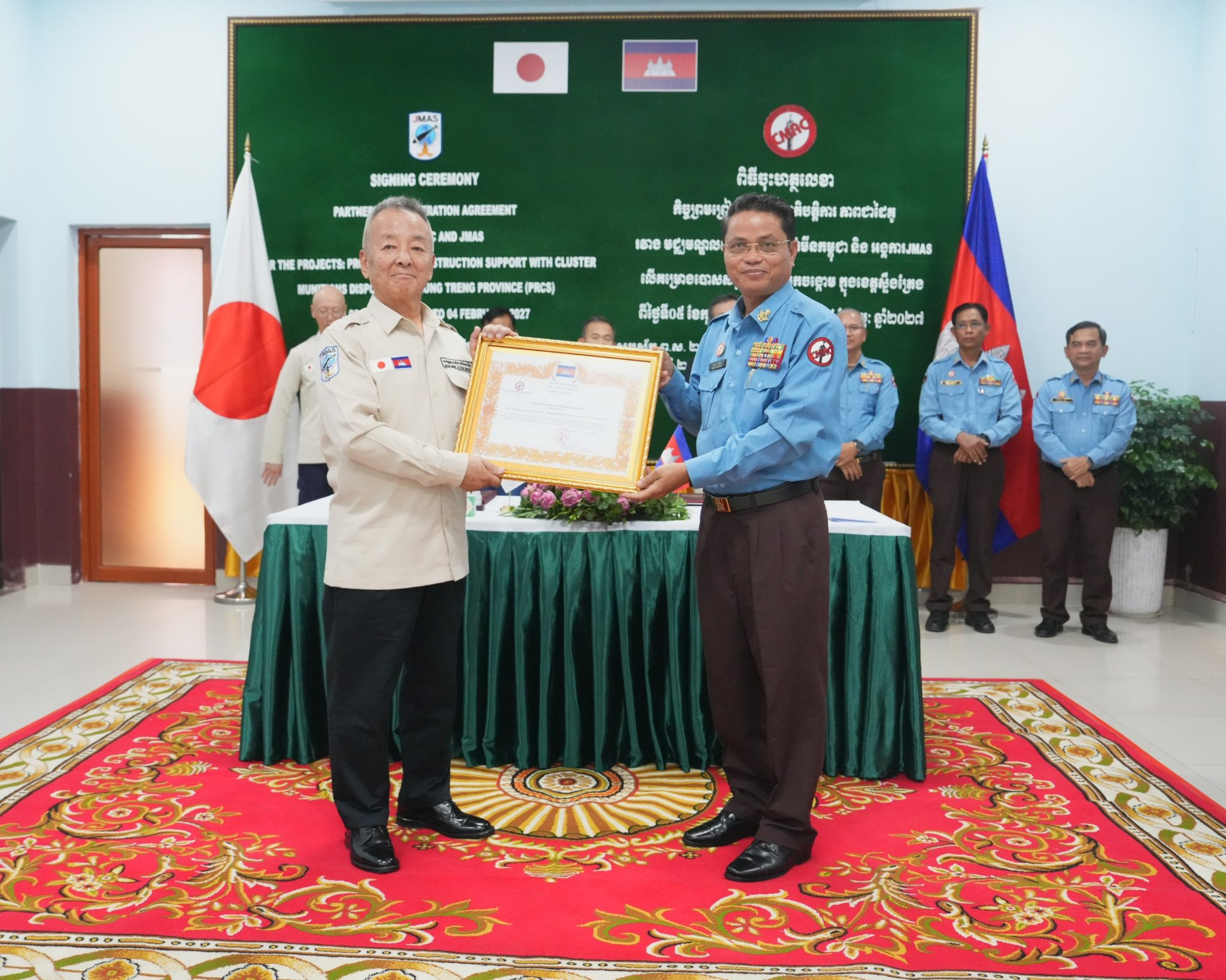 សូមបញ្ជាក់ថា អង្គភាព CMAC និងអង្គការ JMAS បានចាប់ផ្តើមកិច្ចសហប្រតិបតត្តិការក្នុងភាពជាដៃគូលើគម្រោងបោសសម្អាតមីន និងអភិវឌ្ឍន៍សហគមន៍ក្រោយបោសម្អាតមីនរួច តាំងពីឆ្នាំ២០០២ ពោលគឺមានរយៈជាង២៤ឆ្នាំហើយ ។